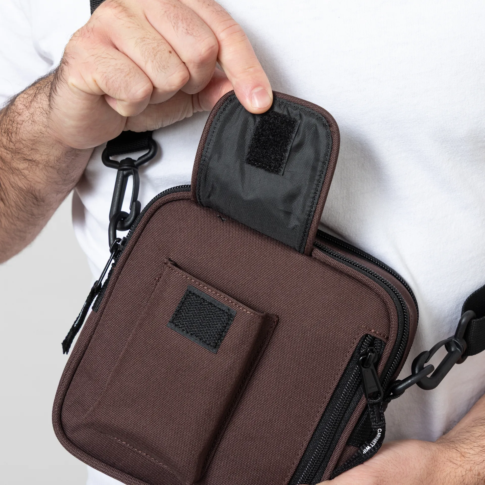 This hip-pack/shoulder bag hybrid from Carhartt WIP has been constructed from a recycled polyester canvas, it's super durable and weather-resistant making it the perfect accompaniment for a gig or festival. The bag is fully lined and features two main openings, fastened with a two-way zip closure, two pockets on the front, one velcro, one zipped, with an adjustable shoulder strap so you can wear it your way. Finished with the iconic Carhartt WIP square woven label.