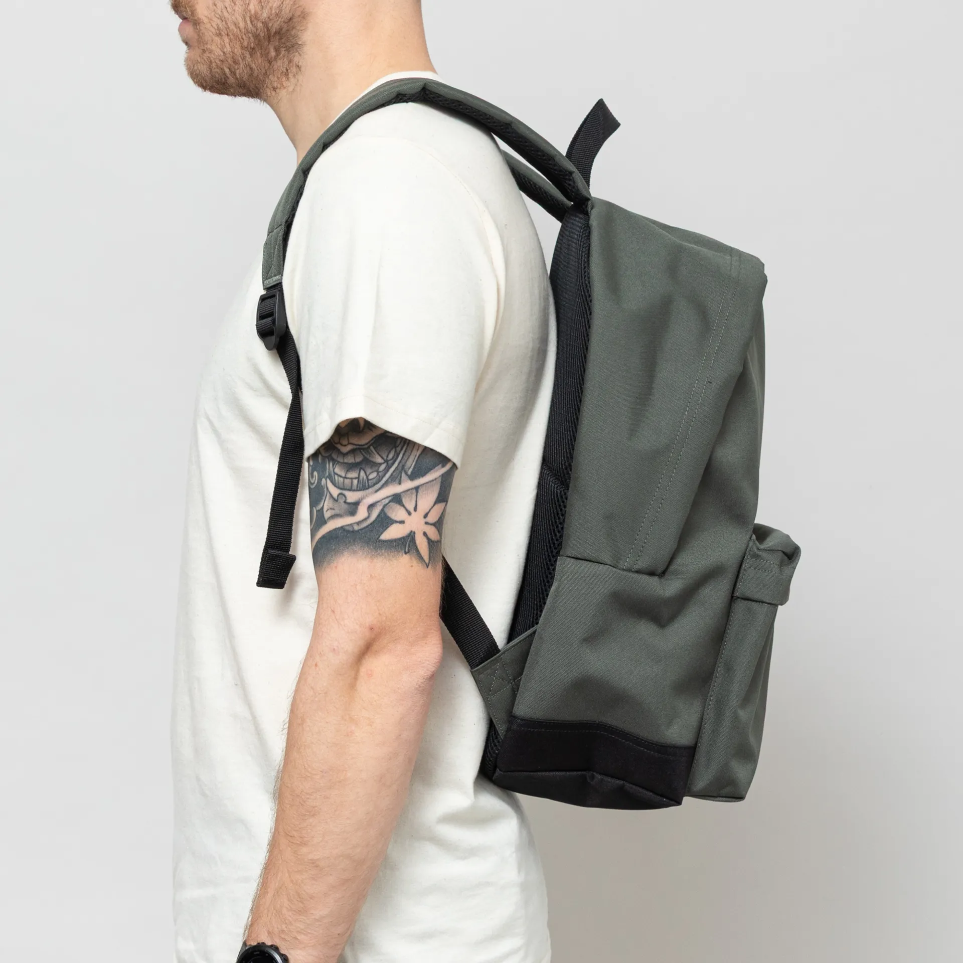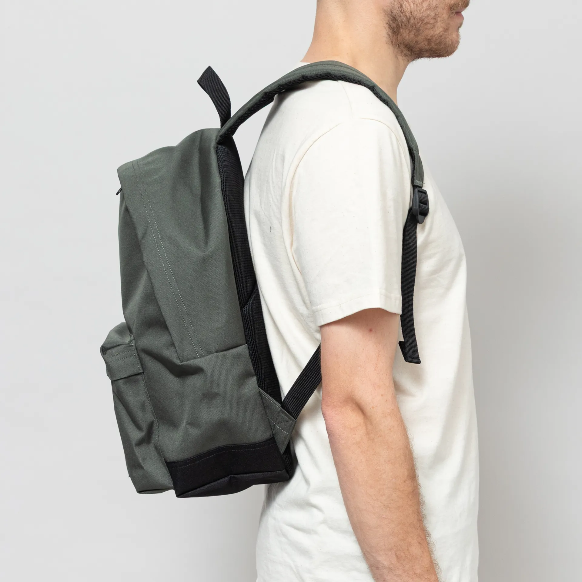 The Jake backpack from Carhartt WIP is constructed from water-repellent, recycled polyester canvas with a CORDURA base.