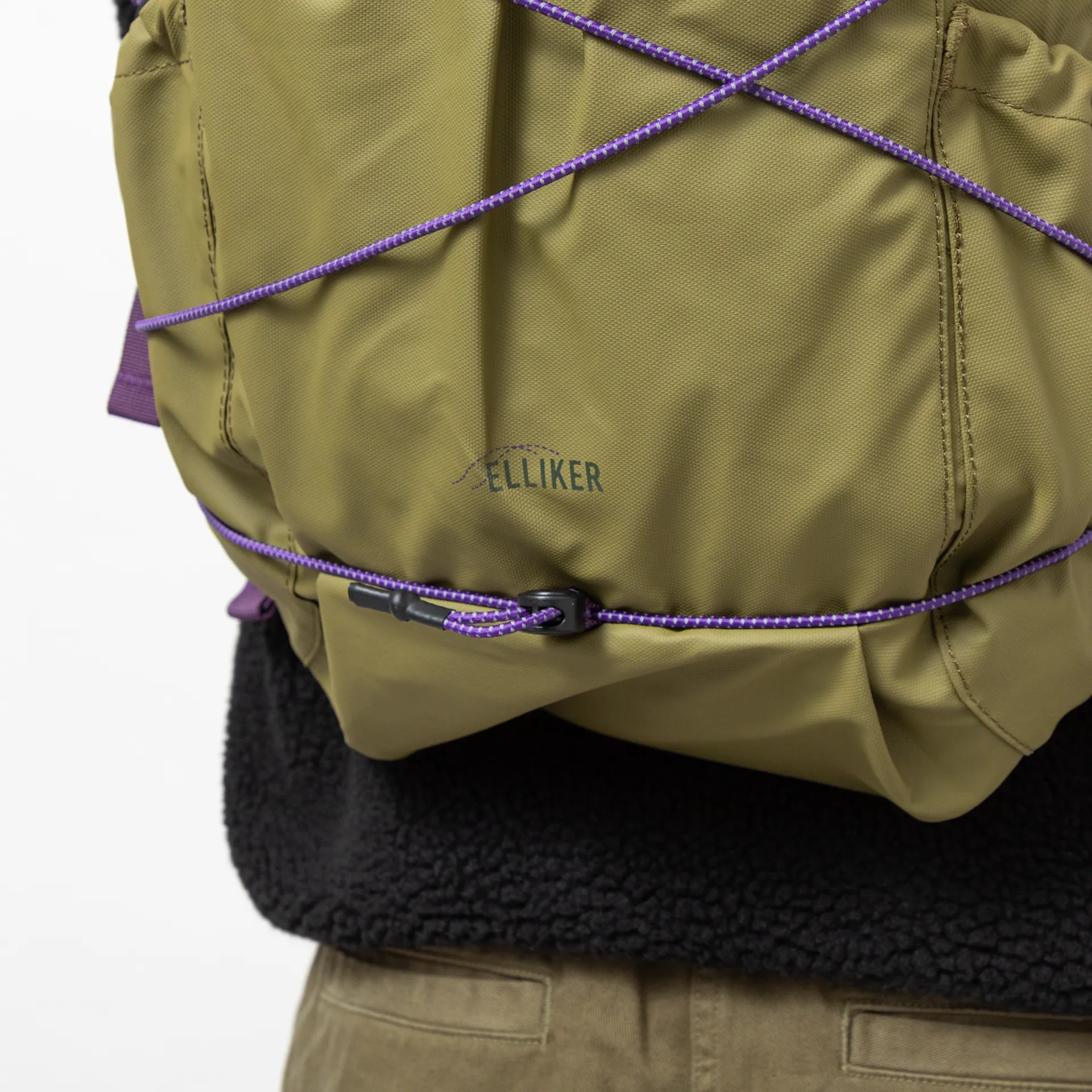 Inside you'll find a second elasticated laptop sleeve, a zip pocket with key clip, phone and pen slip pockets and internal daisy chain webbing. It has ergonomic padded shoulder straps, a breathable back panel, with adjustable chest and waist straps. Finished off with the Elliker logo printed to the front of the pack.