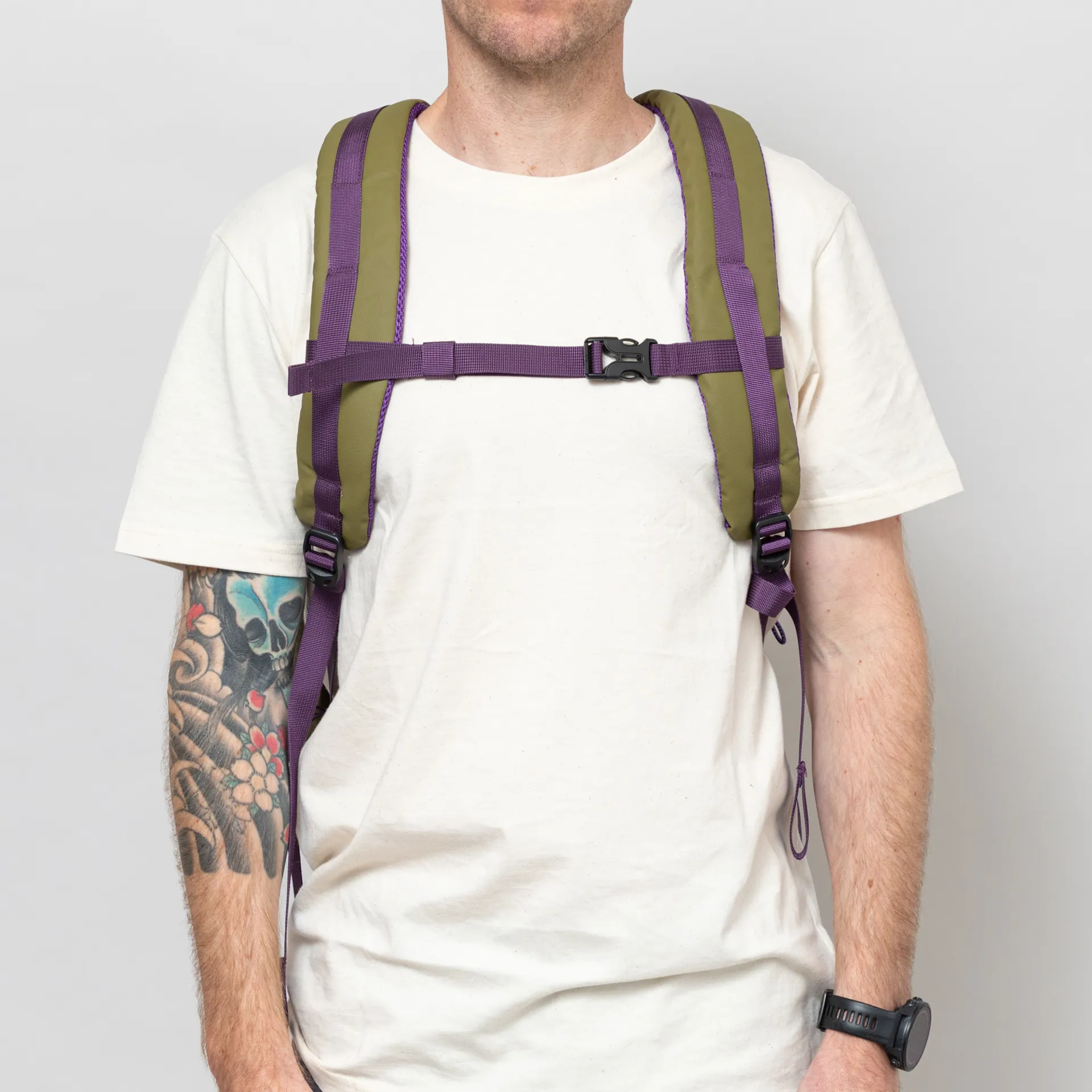 A rucksack from sustainable British luggage label Elliker, made from a lightweight yet durable 100% recycled polyester with a waterproof PU coating. The Kiln has one large compartment with internal pockets, pouches and a laptop sleeve.