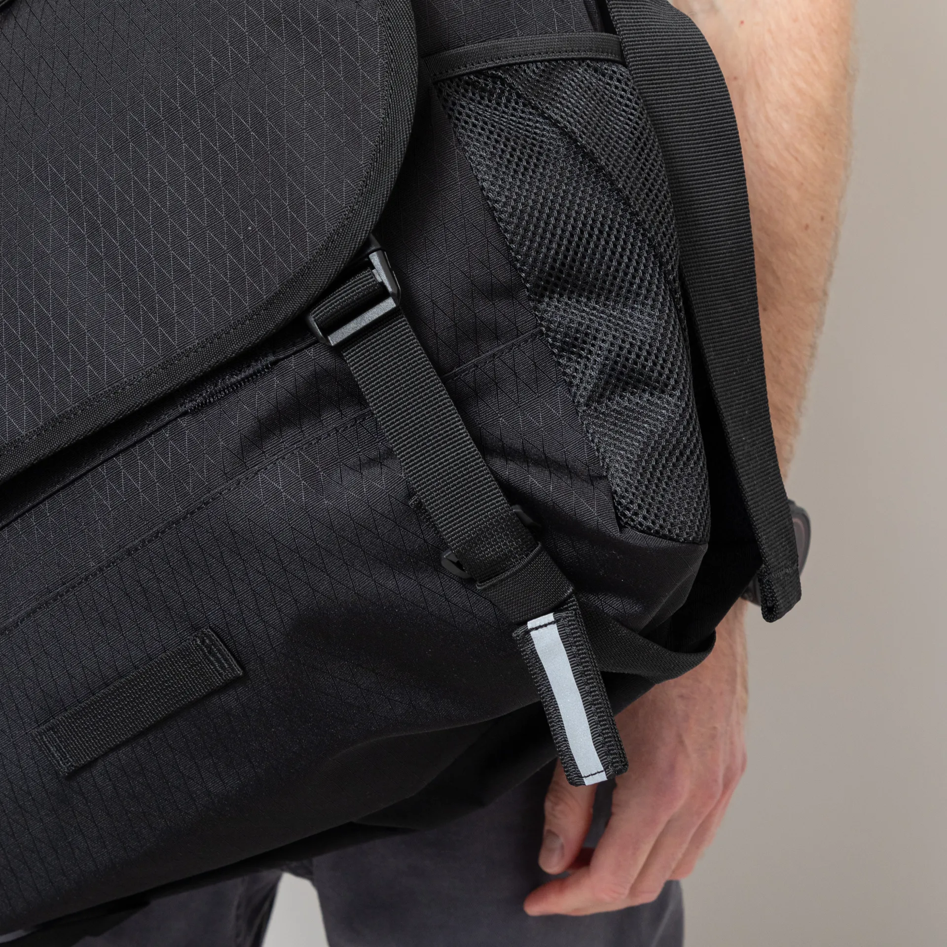 A messenger bag from Gramicci,constructed from recycled 320D CORDURA nylon, a seriously tough military-approved fabric renowned for its resistance to tearing and abrasion.