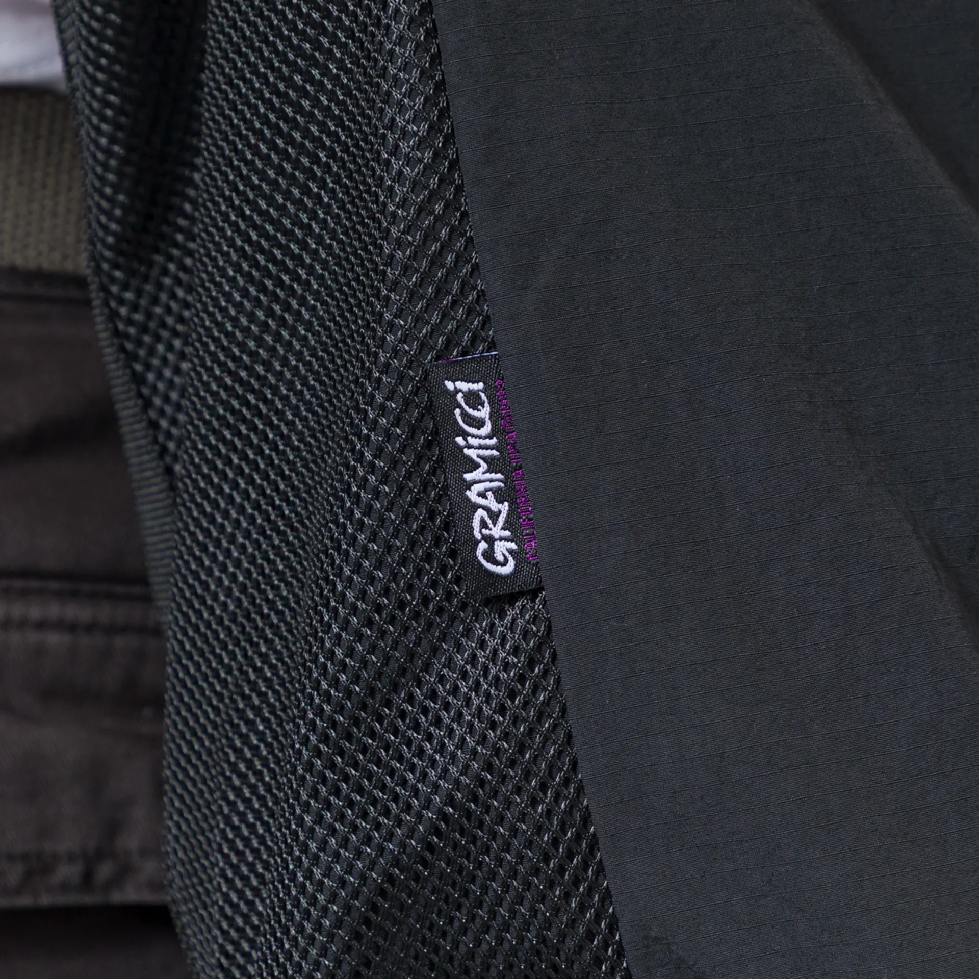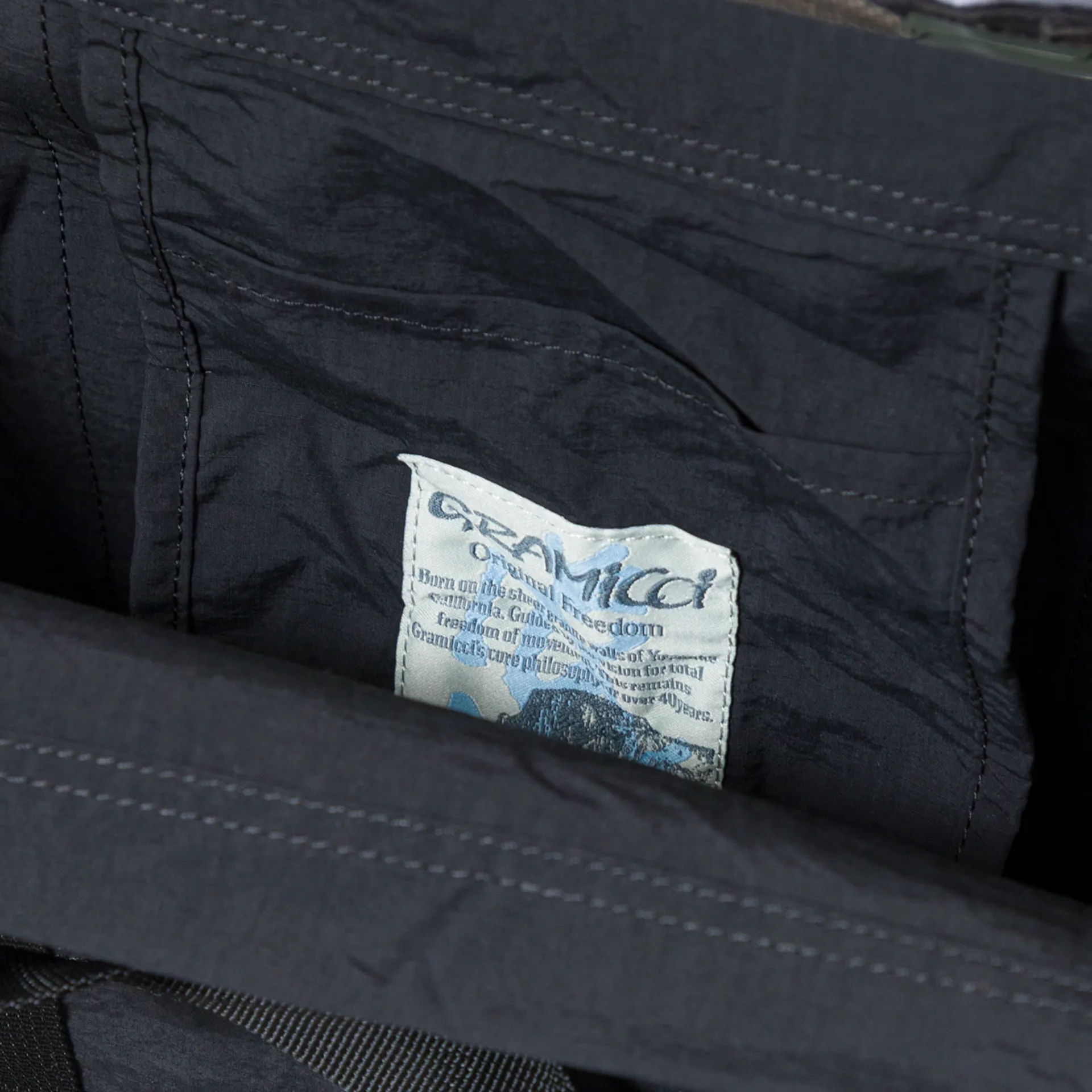 A tote bag from Gramicci, constructed from high-density ripstop nylon fabric, with the ability to fold down into shoulder bag for convenience. It has heavy-duty webbed straps, a large 40 litre compartment, a front zip pocket, interior zip pocket and mesh side pouches. Finished with A classic Gramicci flag label.