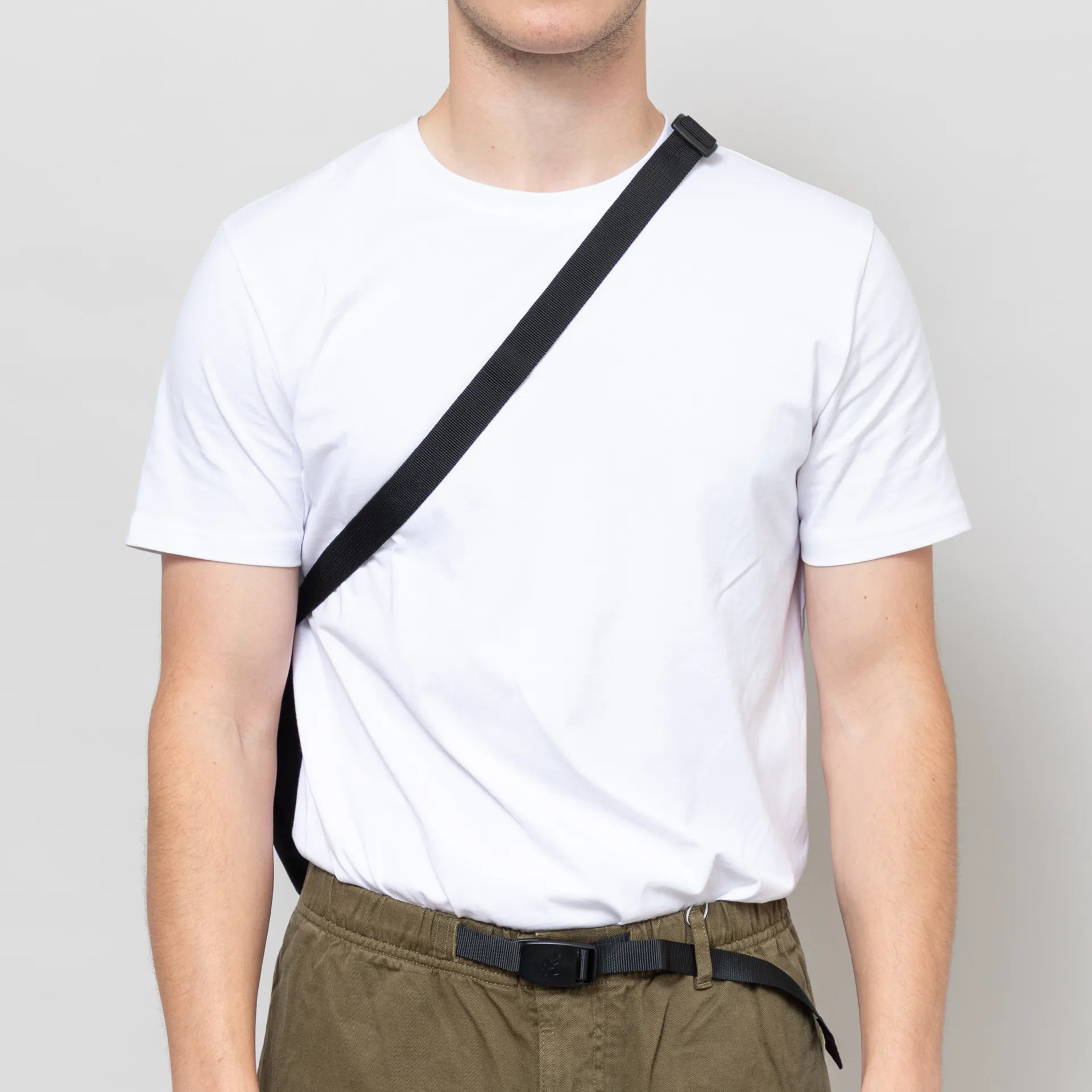 A lightweight sacoche side-pouch from Gramicci, constructed from recycled 320D CORDURA. It has two zipped compartments to keep your essentials safe, an adjustable shoulder strap and is finished with a Gramicci flag label at the side seam.