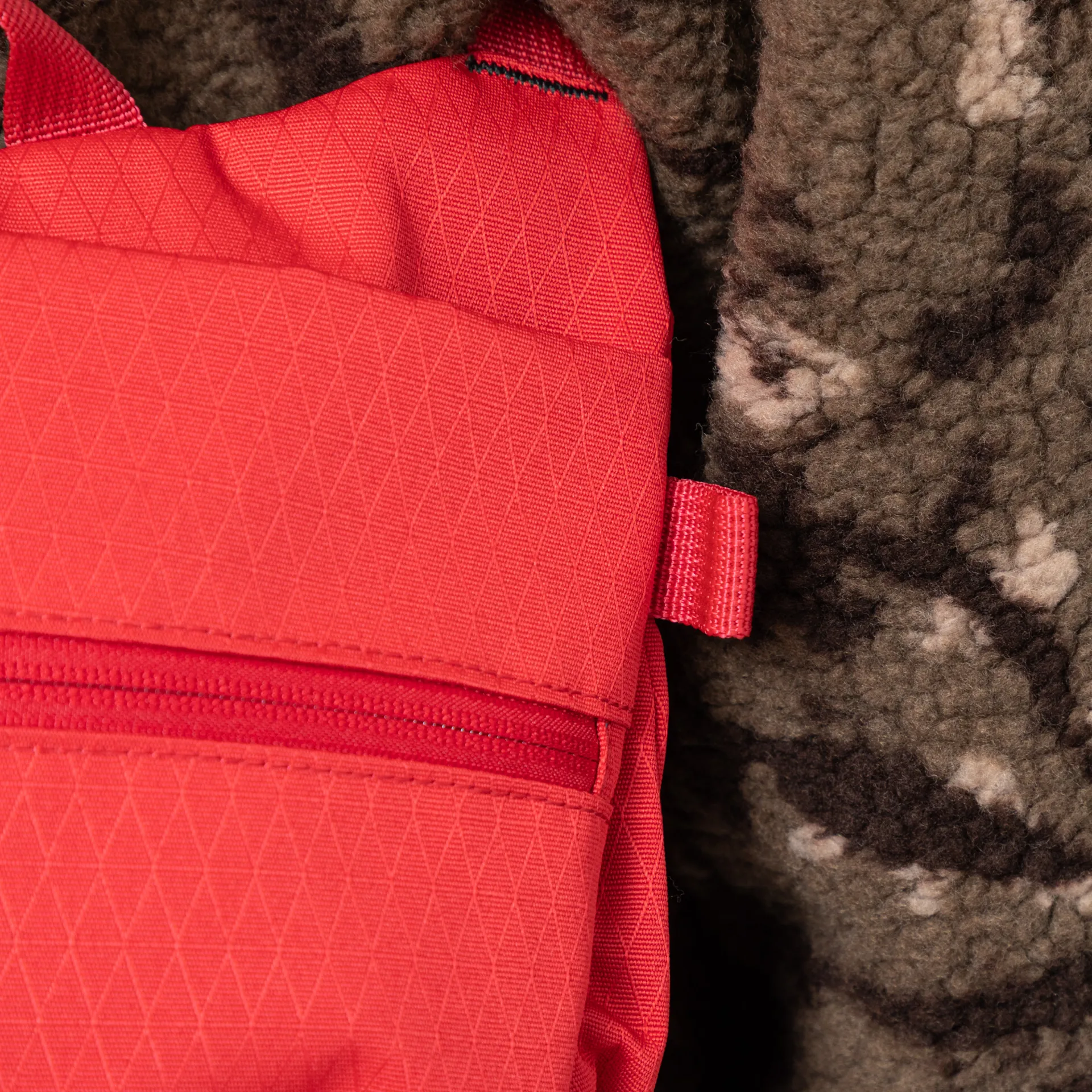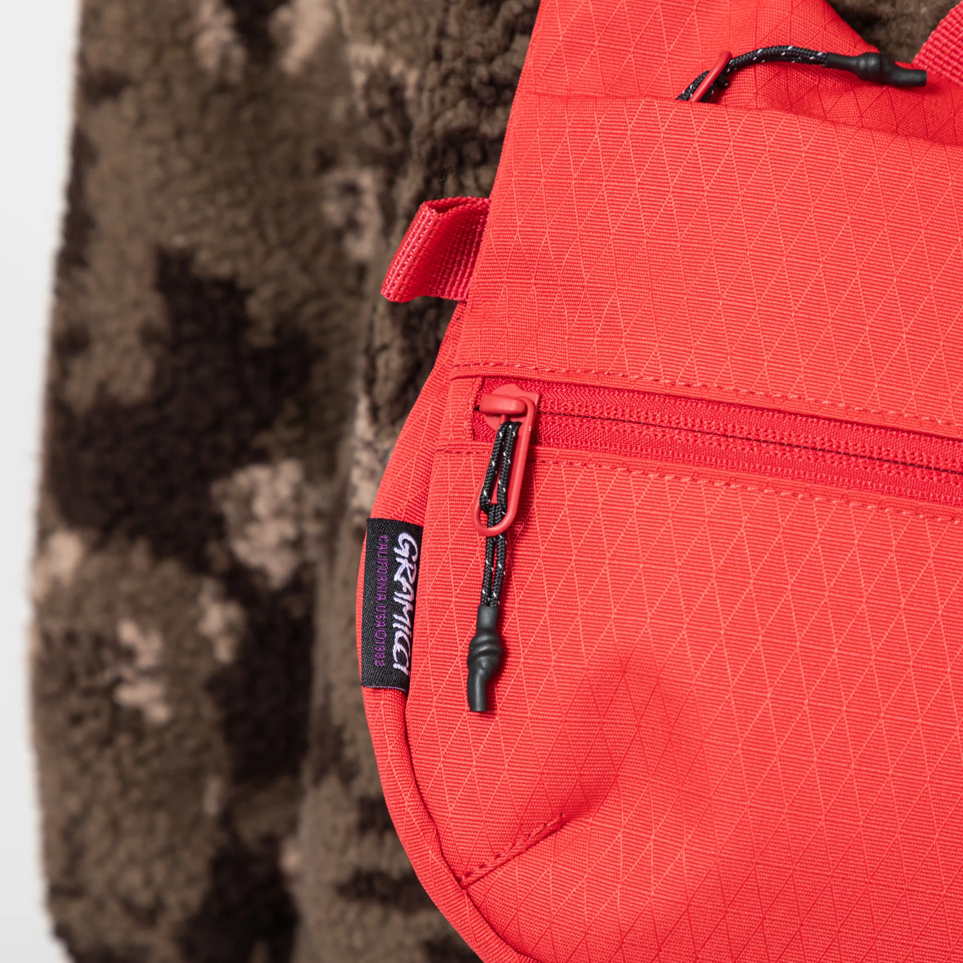 A lightweight sacoche side-pouch from Gramicci, constructed from recycled 320D CORDURA. It has two zipped compartments to keep your essentials safe, an adjustable shoulder strap and is finished with a Gramicci flag label at the side seam.