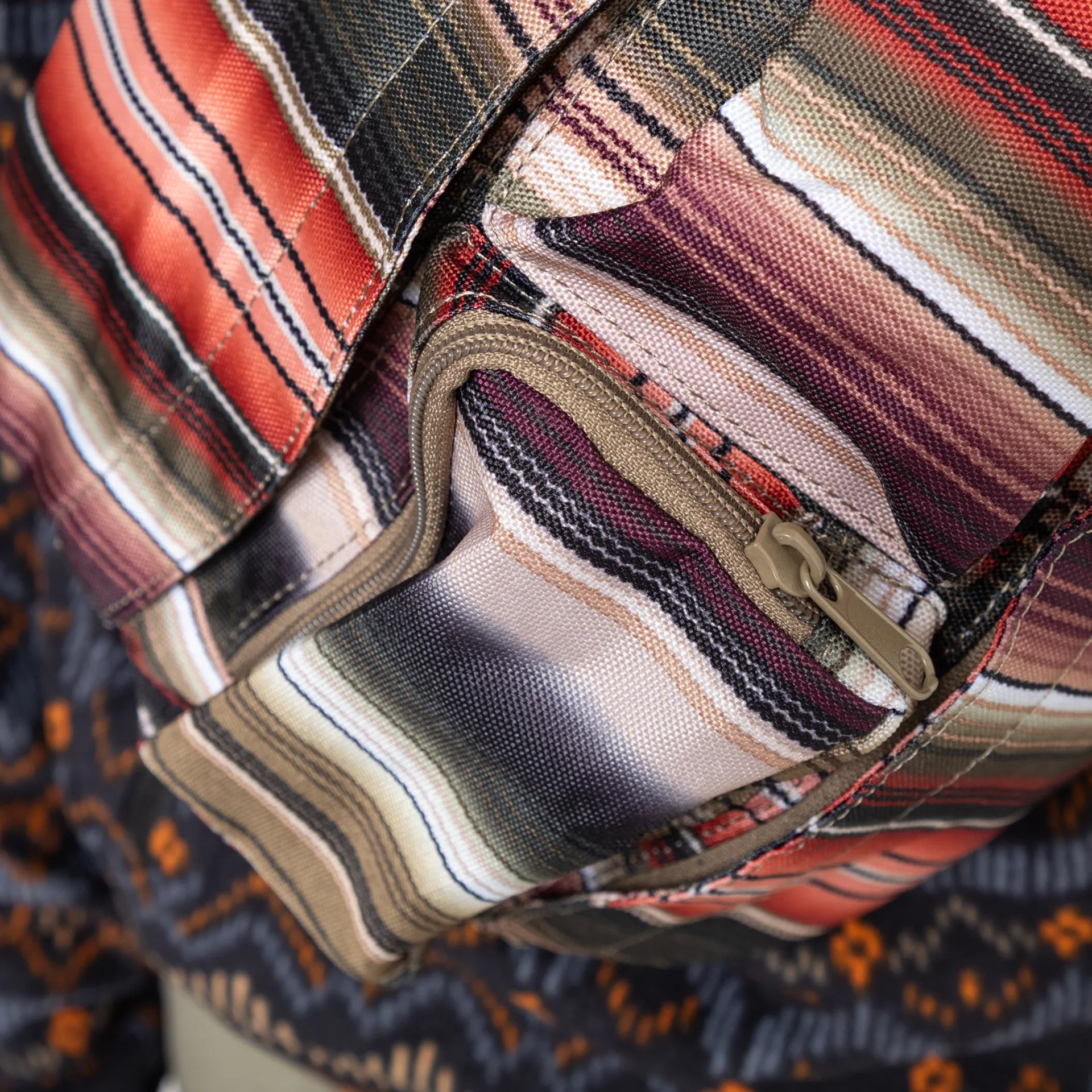 The Mini Rope Sling Bag from Kavu has been crafted from 11oz 100% water-resistant 600D polyester, featuring two main zippered compartments, one of which houses a small internal zippered pocket.