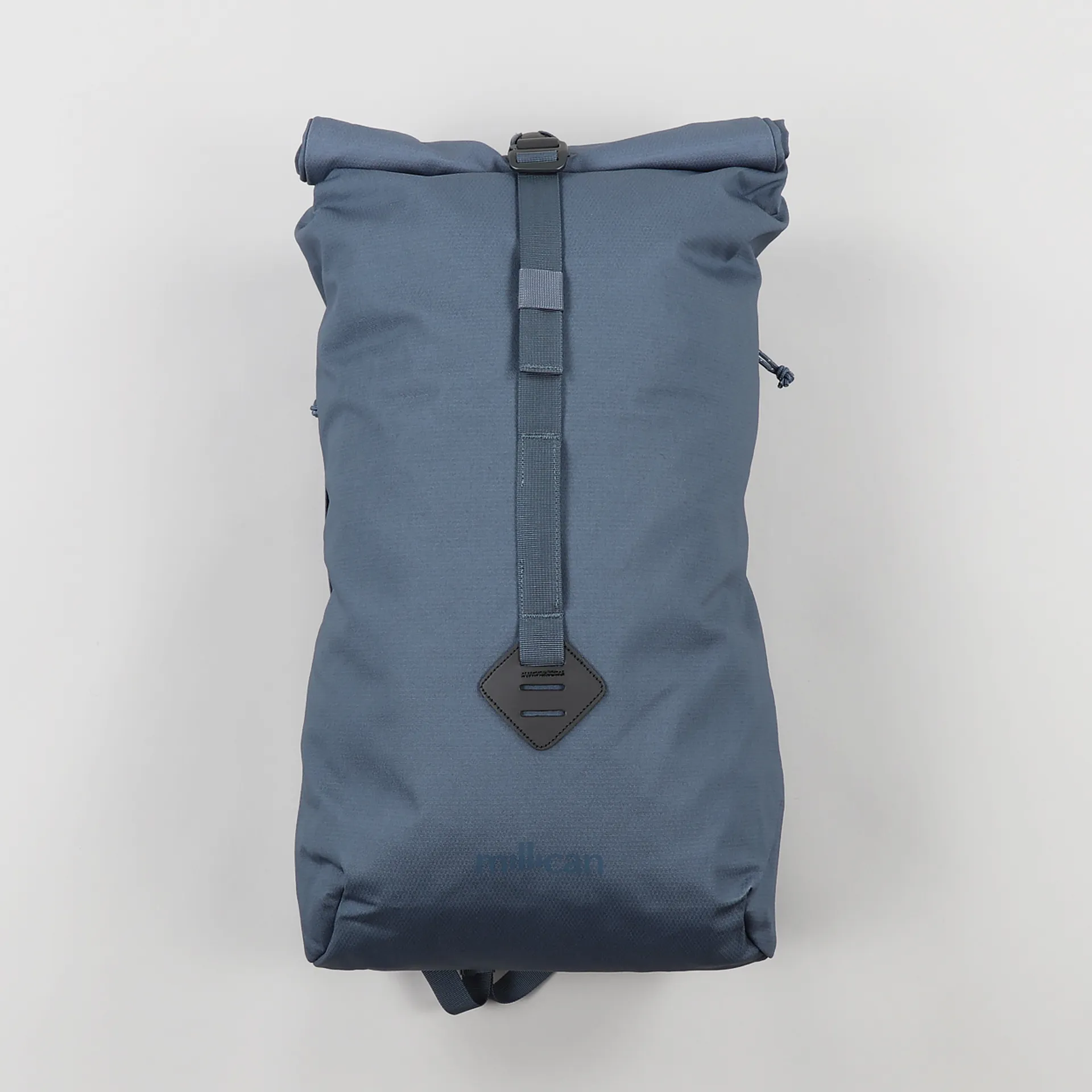 The bag itself is made from Millican's Bionic Canvas. Made from 38% cotton, 57% recycled polyester and 5% high-tenacity polyester, this canvas is 30% stronger than others used in outerwear, and is highly weather resistant. It has a wax-impregnated and DWR (Durable Water Repellent) finish to increase its protection. The lining of the bag is made from 100% recycled polyester and the hardware making up the buckles is Aluminium. It has a padded backboard and shoulder straps to increase comfort, as well as adjustable waist and sternum straps.