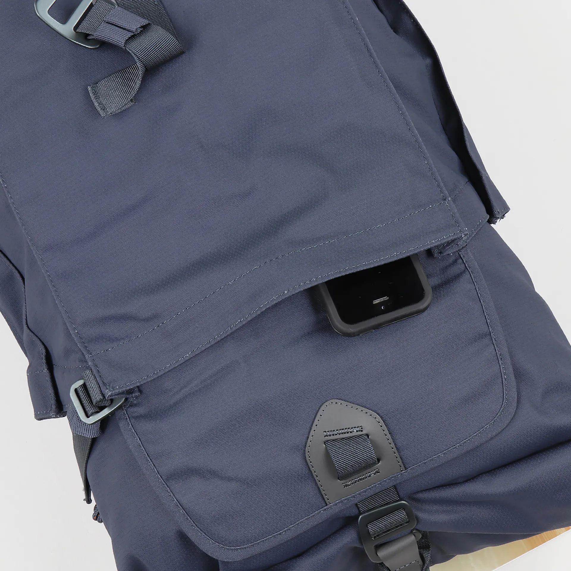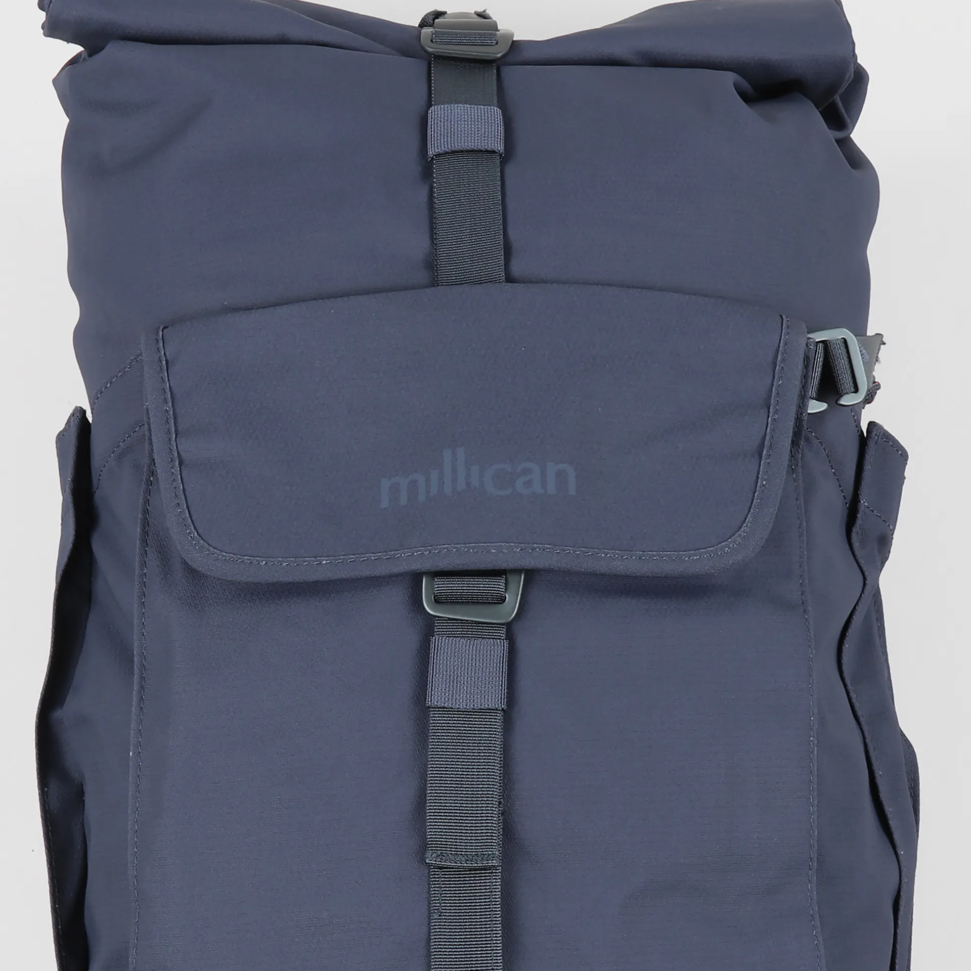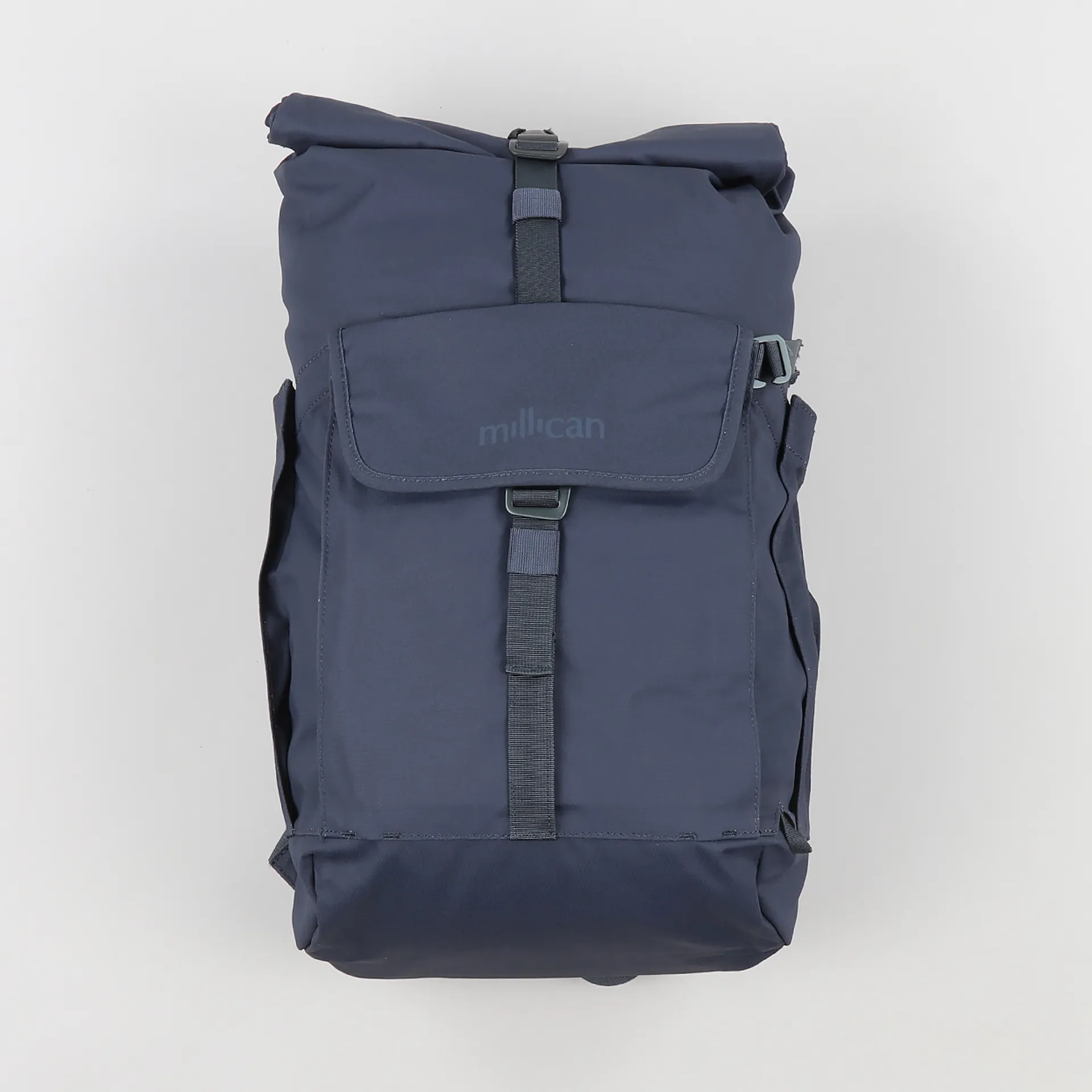 The bag itself is made from Millican's Bionic Canvas. Made from 38% cotton, 57% recycled polyester and 5% high-tenacity polyester, this canvas is 30% stronger than others used in outerwear, and is highly weather resistant. It has a wax-impregnated and DWR (Durable Water Repellent) finish to increase its protection. The lining of the bag is made from 100% recycled polyester and the hardware making up the buckles is Aluminium. It has a padded backboard and shoulder straps to increase comfort, as well as adjustable waist and sternum straps.