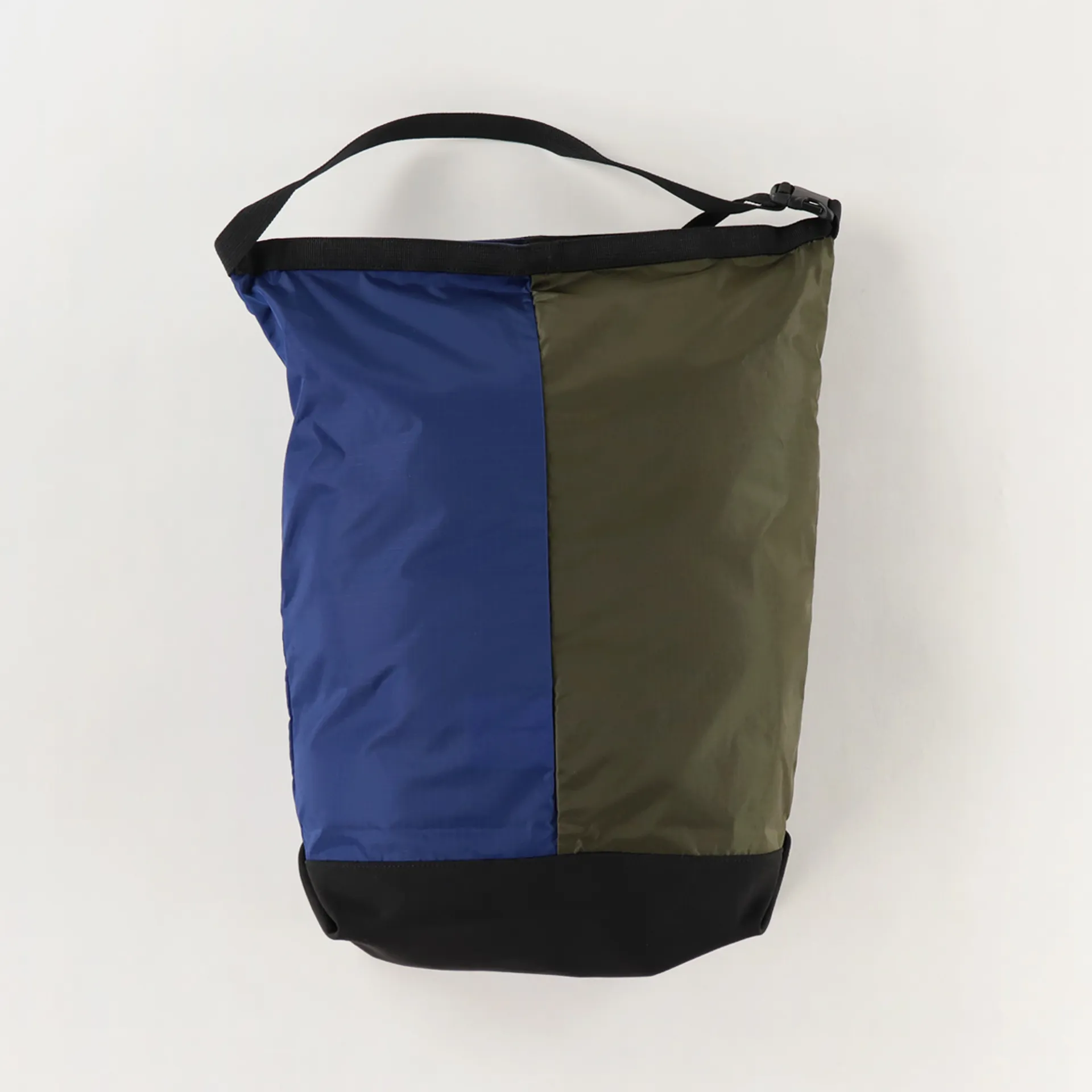 A shoulder bag from Nanamica made from a lightweight and weather-resistant nylon with a zippered pouch, Velcro top and a woven logo patch.