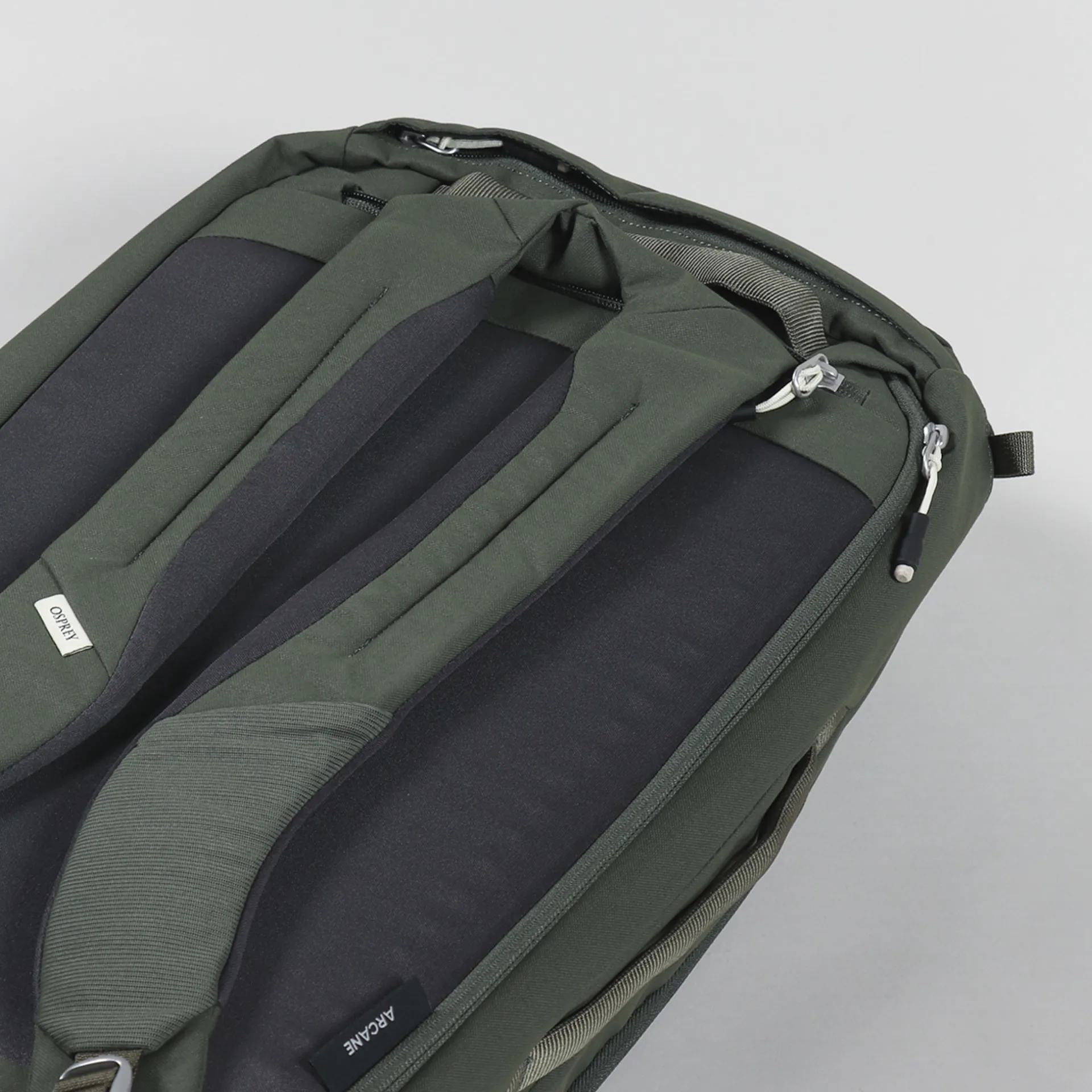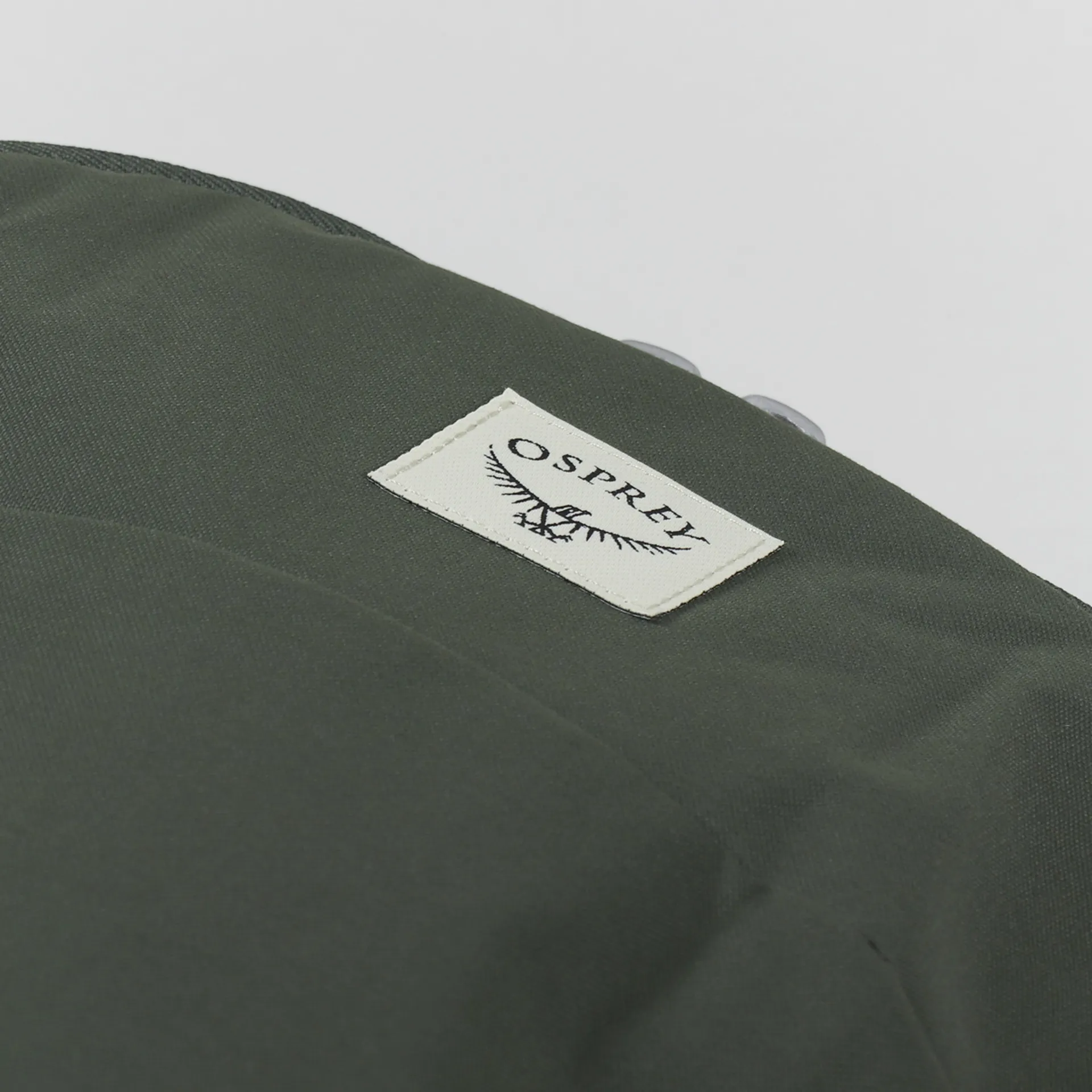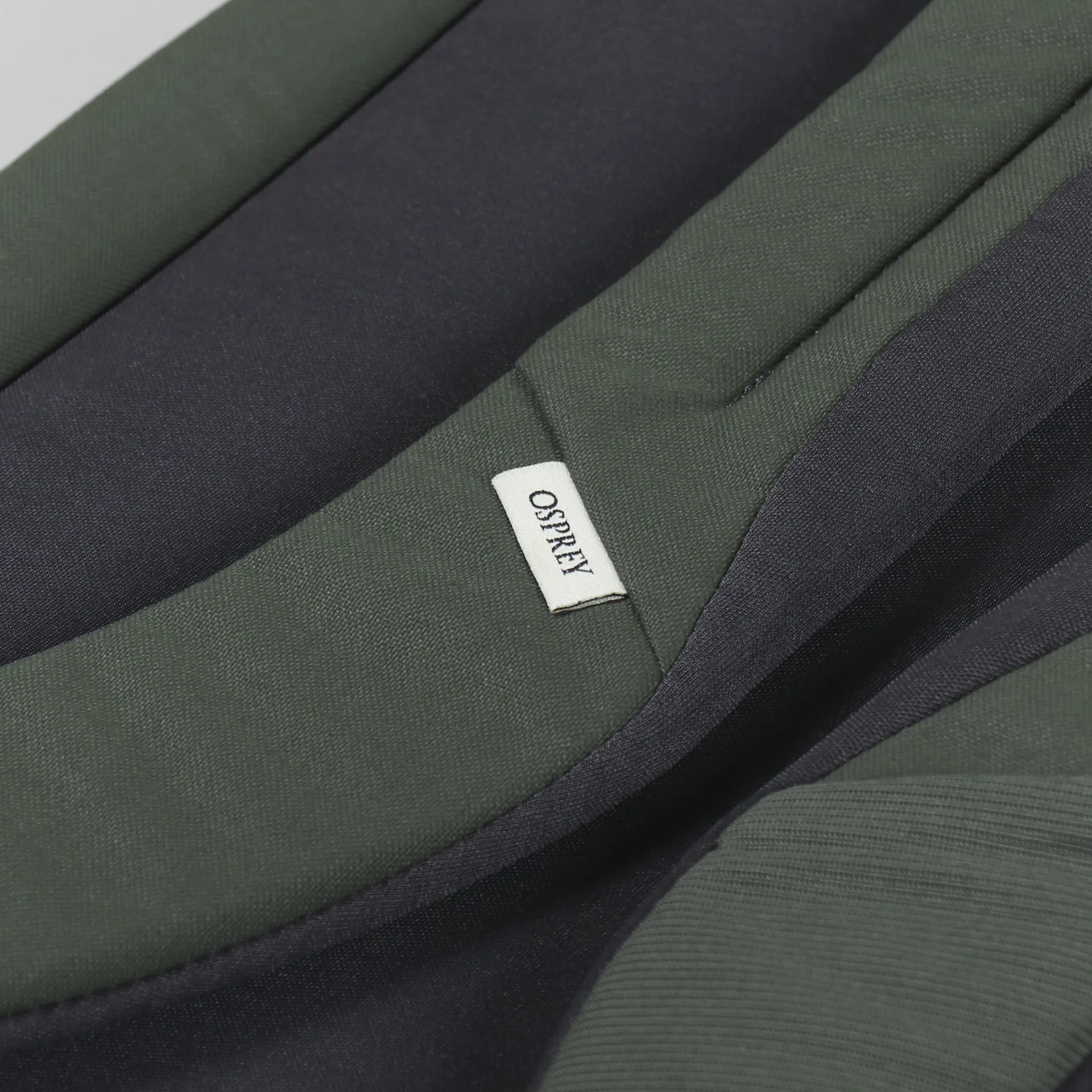 A duffel bag from Osprey made from a recycled nylon canvas shell which is lightweight and weather-resistant, with a 30L capacity including a zippered pouch, large side sleeve and a main compartment with zippered pockets.