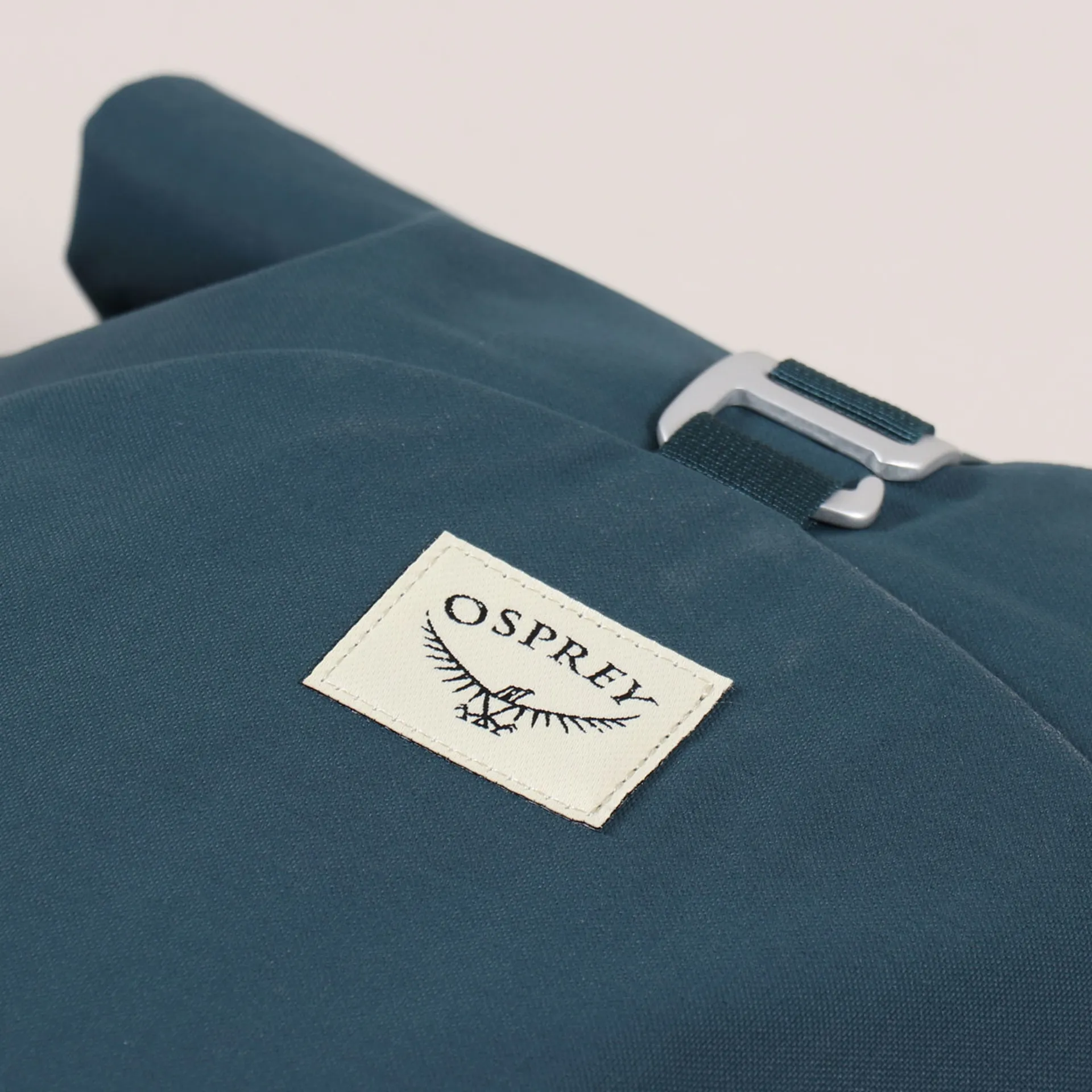 A rucksack from Osprey's Lifestyle collection, made from 100% recycled nylon with a durable canvas outer and cloth liner and sides. The material is bluesign approved and treated with a PFC-free DWR (durable water repellent) coating.
