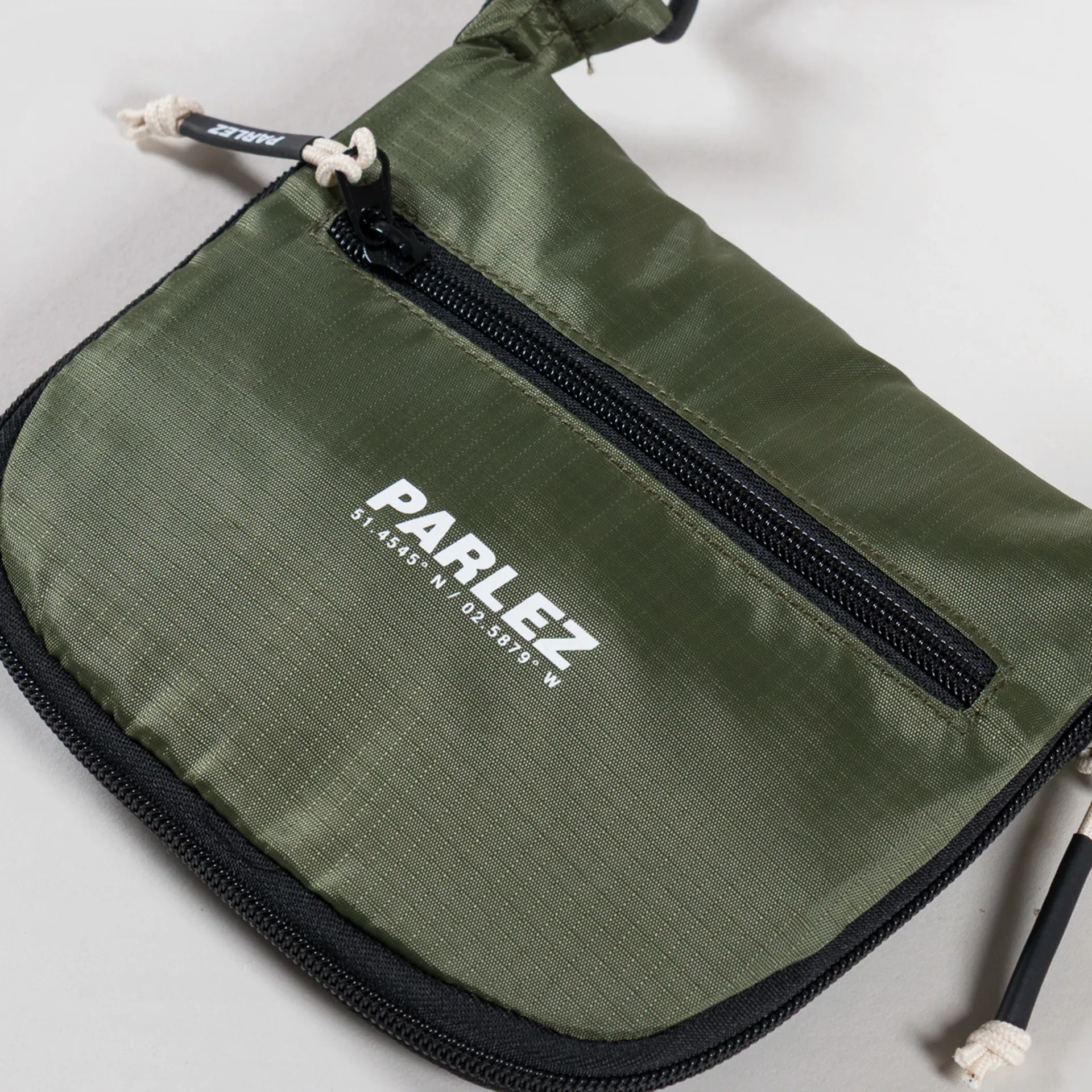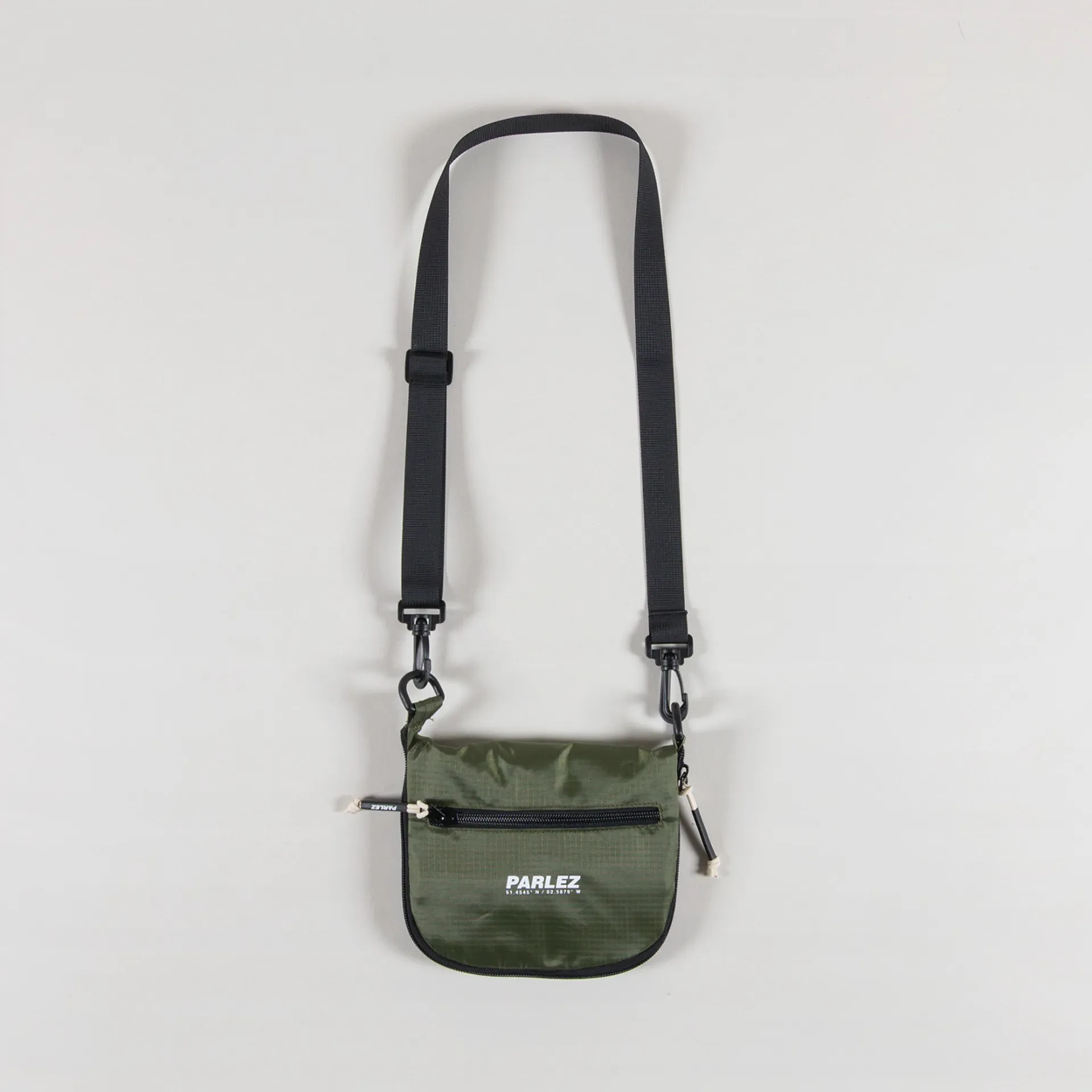 A convertible sling bag from Parlez that folds out into a large tote bag. Constructed from durable 100% recycled nylon ripstop, with an adjustable webbed strap, printed logos and branded zip pulls.