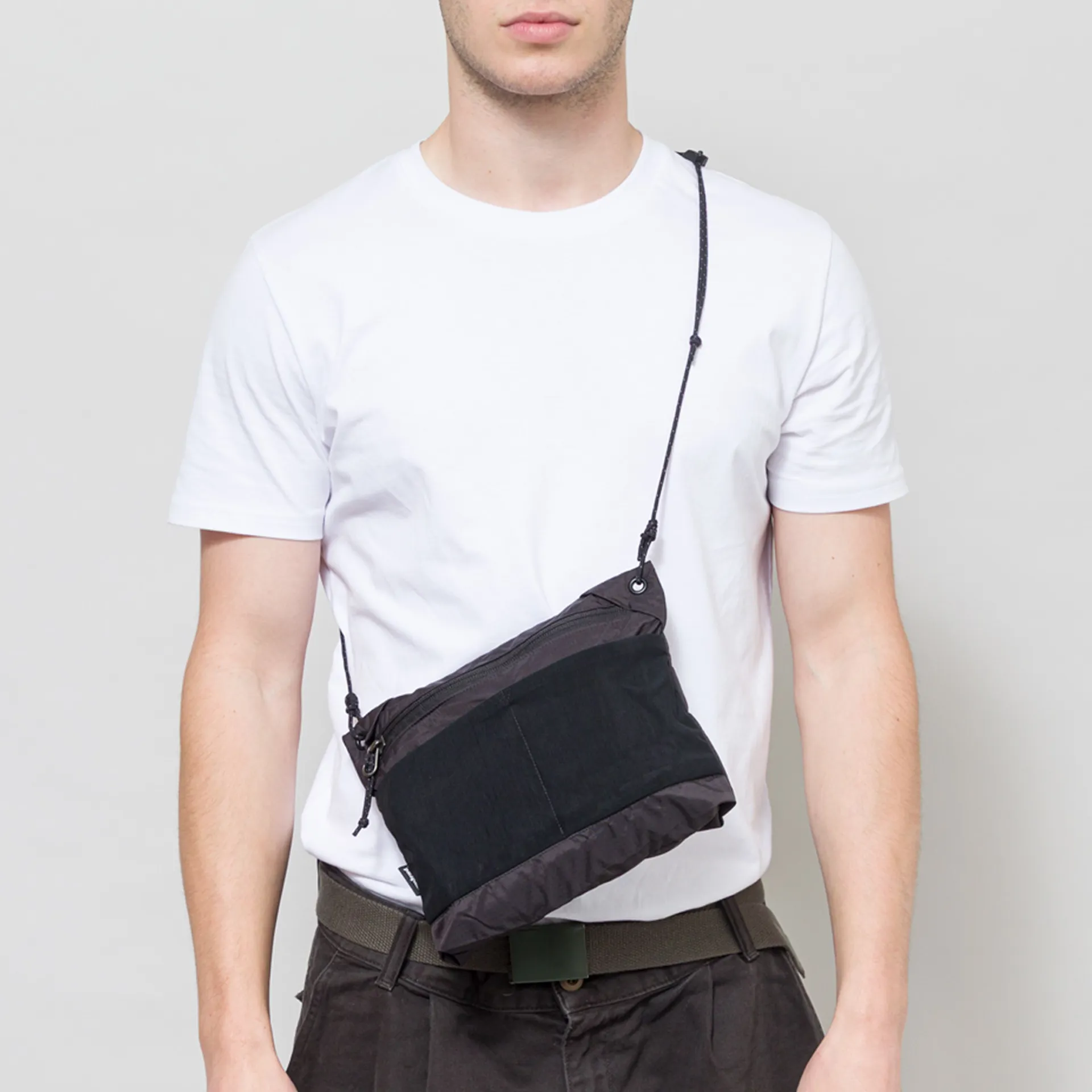 A small crossbody bag from Patagonia, constructed from lightweight yet strong recycled nylon ripstop fabric that is weather-resistant and highly packable
