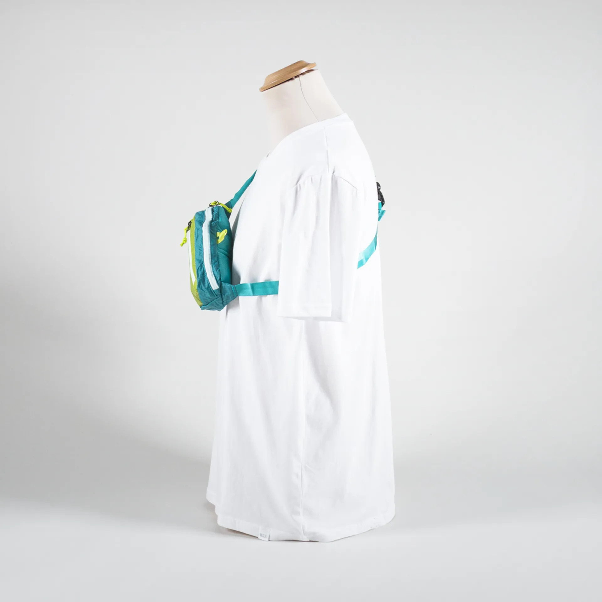 A lightweight hip pack from Patagonia made from a blend of 100% recycled nylon and polyester in a ripstop weave with a DWR coating and a woven logo patch.