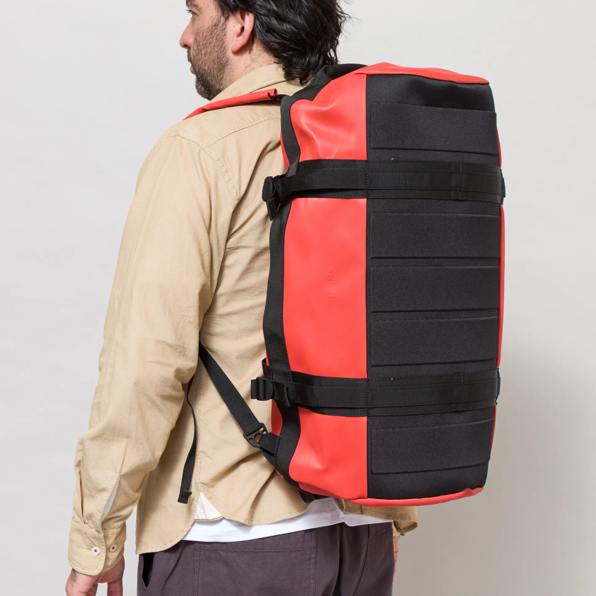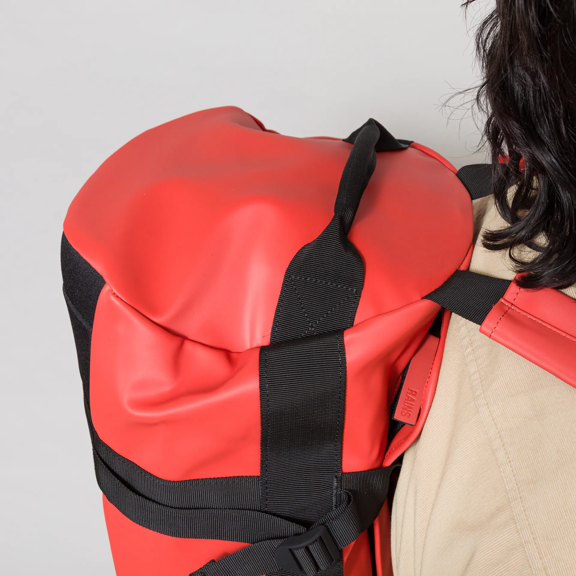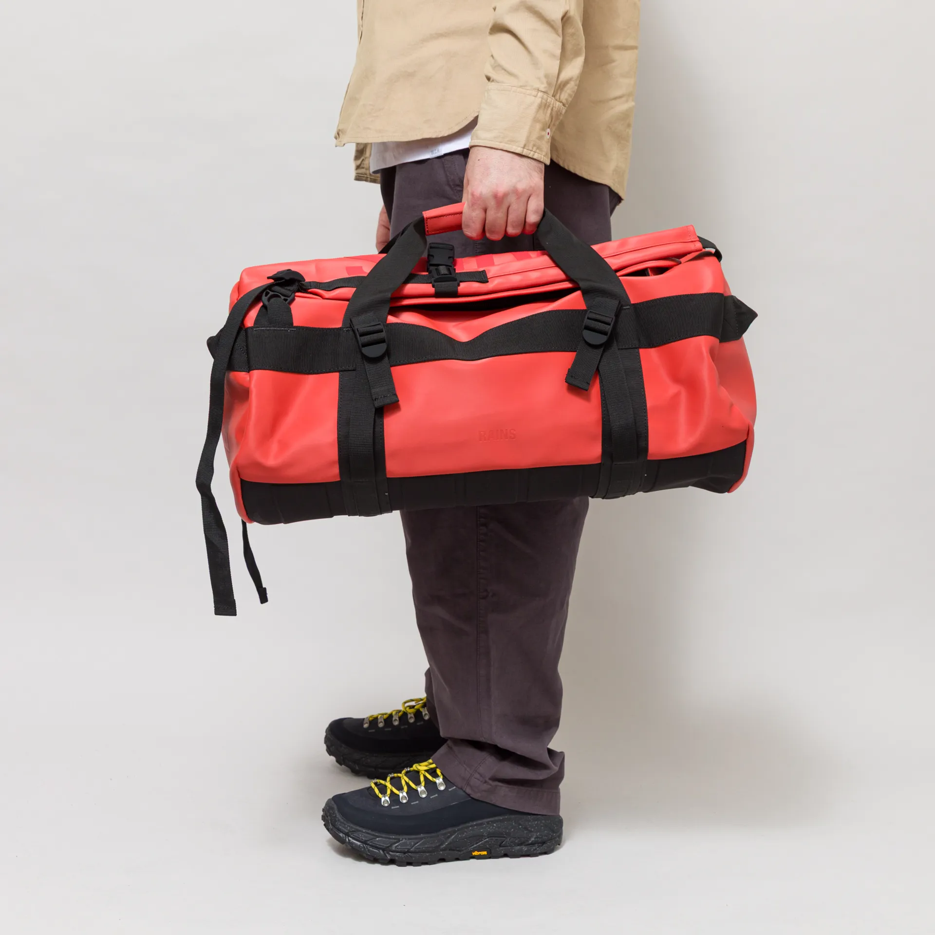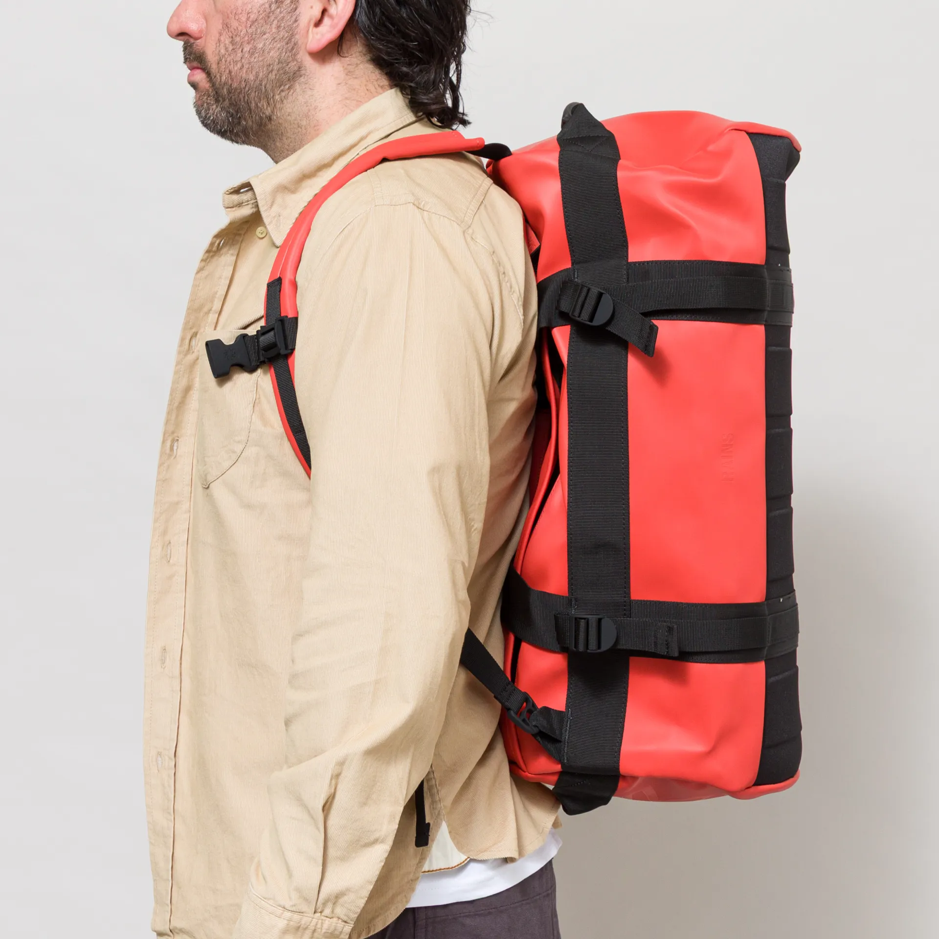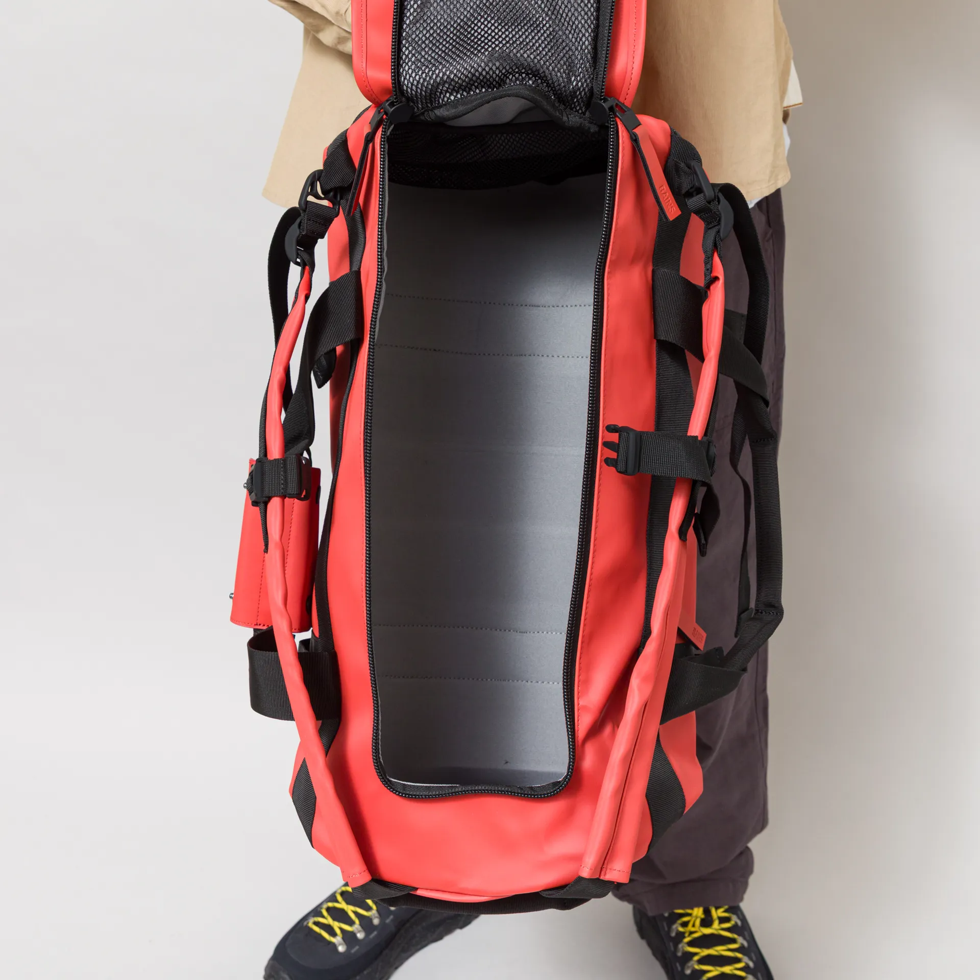 A duffel bag from Copenhagen's Rains, made from durable waterproof polyester with a PU coating for further protection from the elements. It has a 34L capacity consisting of a small zippered pocket to the side, a large main compartment and internal mesh pouches.