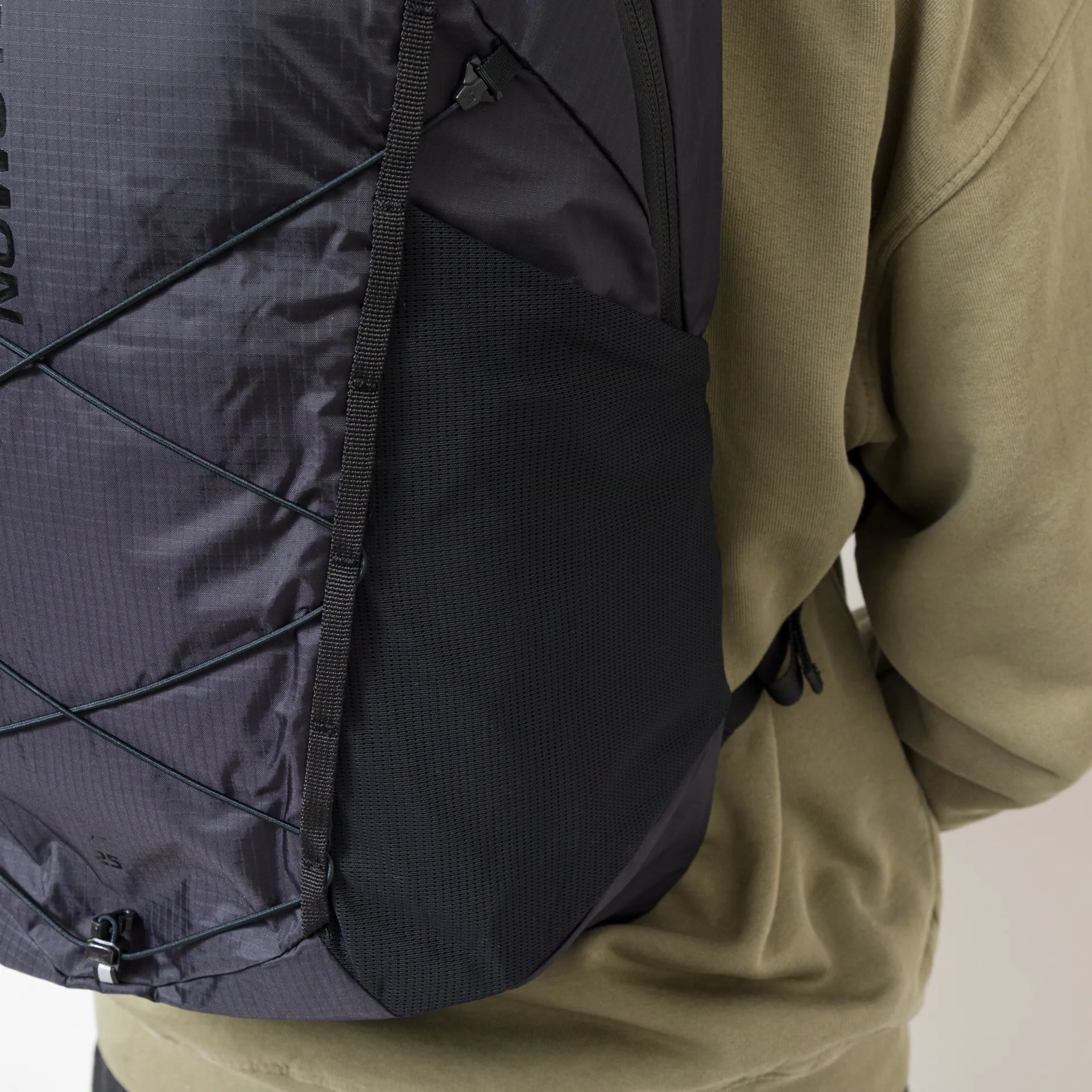 The XT 25 from Salomon, a backpack that combines technical hiking features and fabrics with urban design codes ready for commutes. It's constructed from a robust and breathable mix of polyester and polyamide with a water-repellent coating for protection against light rainfall. It features a large main compartment, a zipped pocket to the top and a 17" laptop compartment, accessed via a zipper at the very top of the bag. With dual mesh pockets at the front, shoulder straps, a padded back panel for comfort and a durable top carry handle. Finished off with tonal Salomon logos throughout.