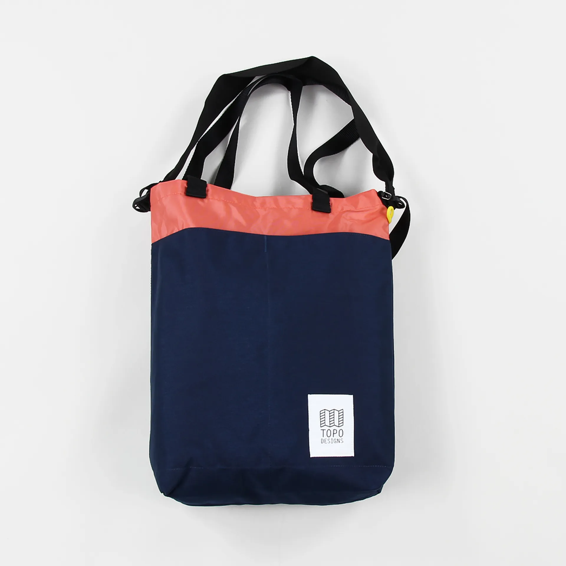A tote bag from Topo Designs made from a durable 1000D nylon canvas with a woven logo patch and a drawcord top for added protection. Ideal for daily use.