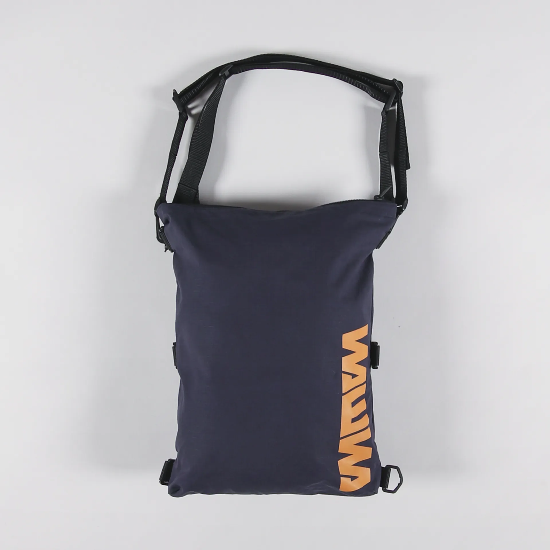 A versatile bag from Manchester-based clothing label WAWWA, made from a durable organic cotton ripstop with a single zippered compartment. The straps can be adjusted and changed around to use as a tote, rucksack or messenger. It has a graphic logo print down the side.