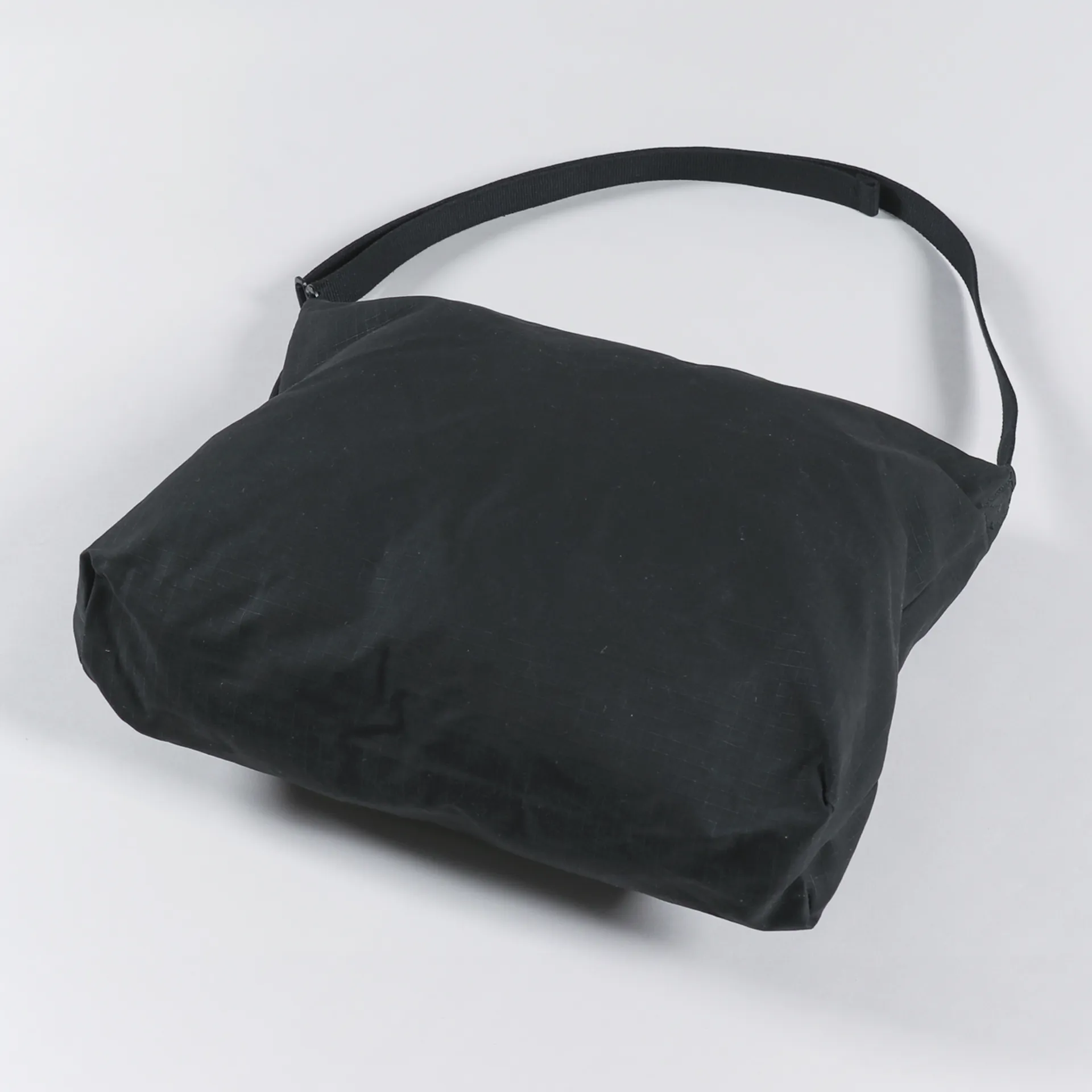 A tote bag from British clothing label WAWWA, made in Manchester from a durable organic cotton ripstop with a single zippered compartment, an adjustable strap and a woven logo patch, made from recycled polyester.