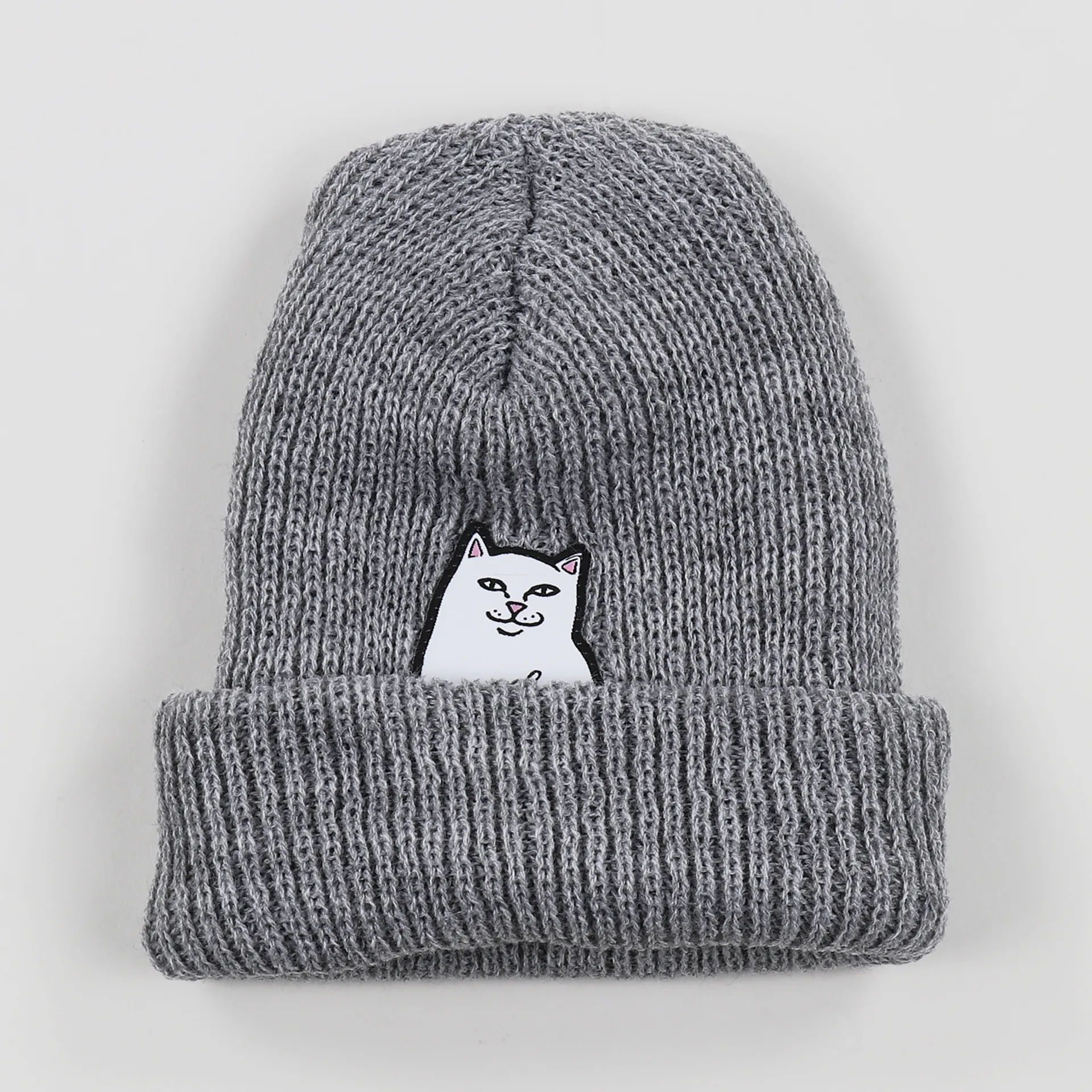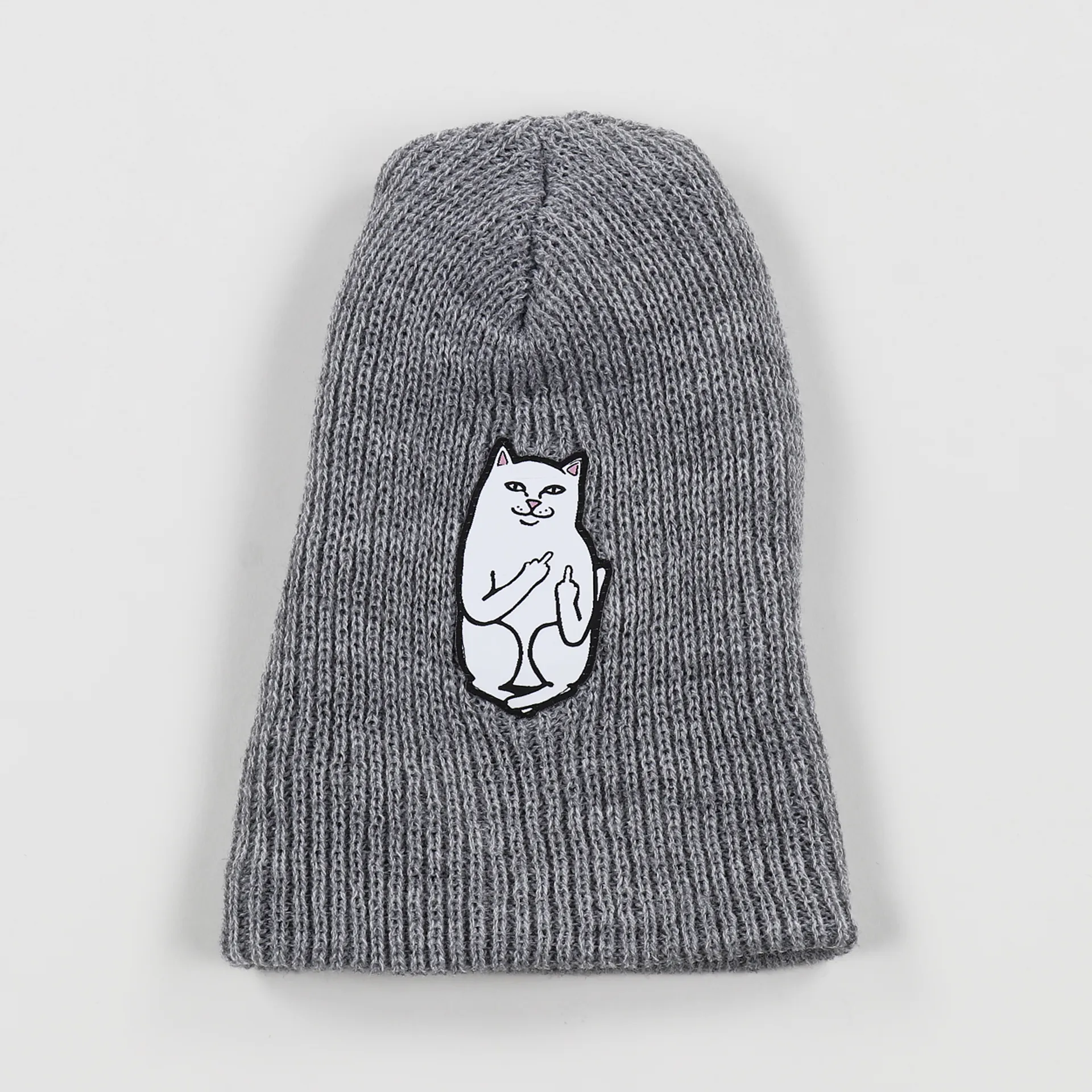 A soft and comfortable ribbed winter beanie from Ripndip with simple rolled-cuff style and a Lord Nermal character on a fine printed canvas.