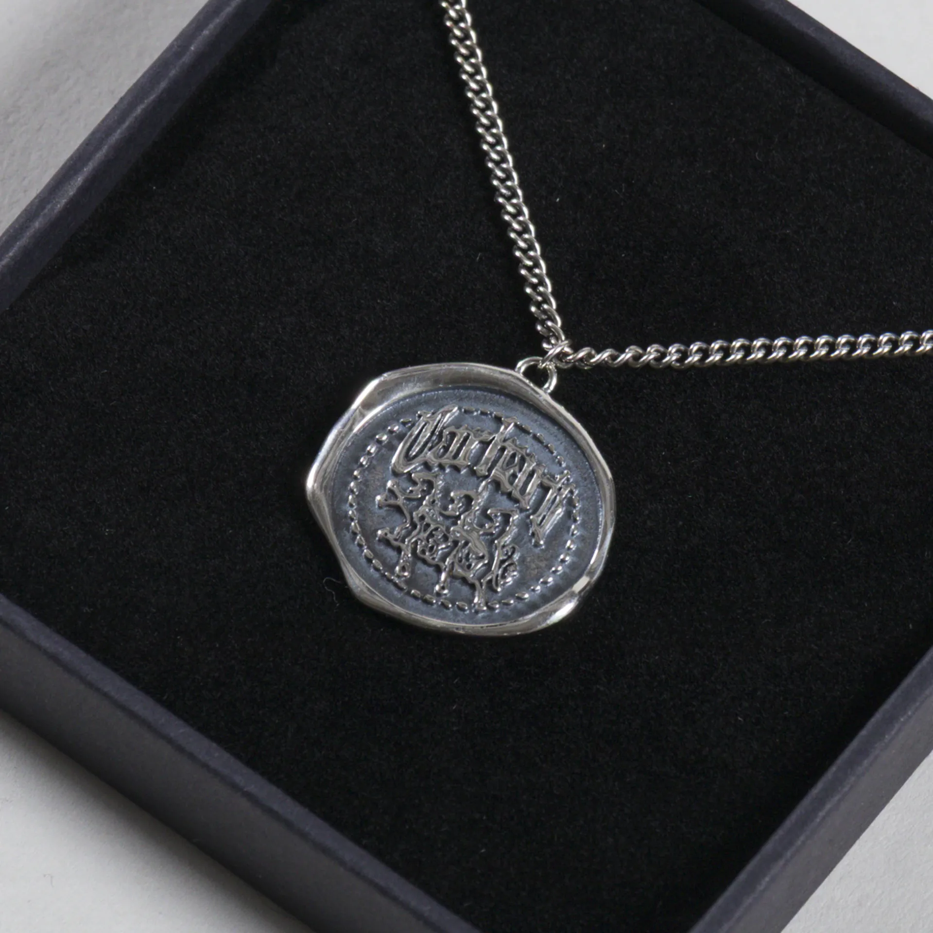 The Hackwork Pendant from Carhartt WIP is made from 925 Sterling Silver, with a 50cm chain and an engraved pendant.