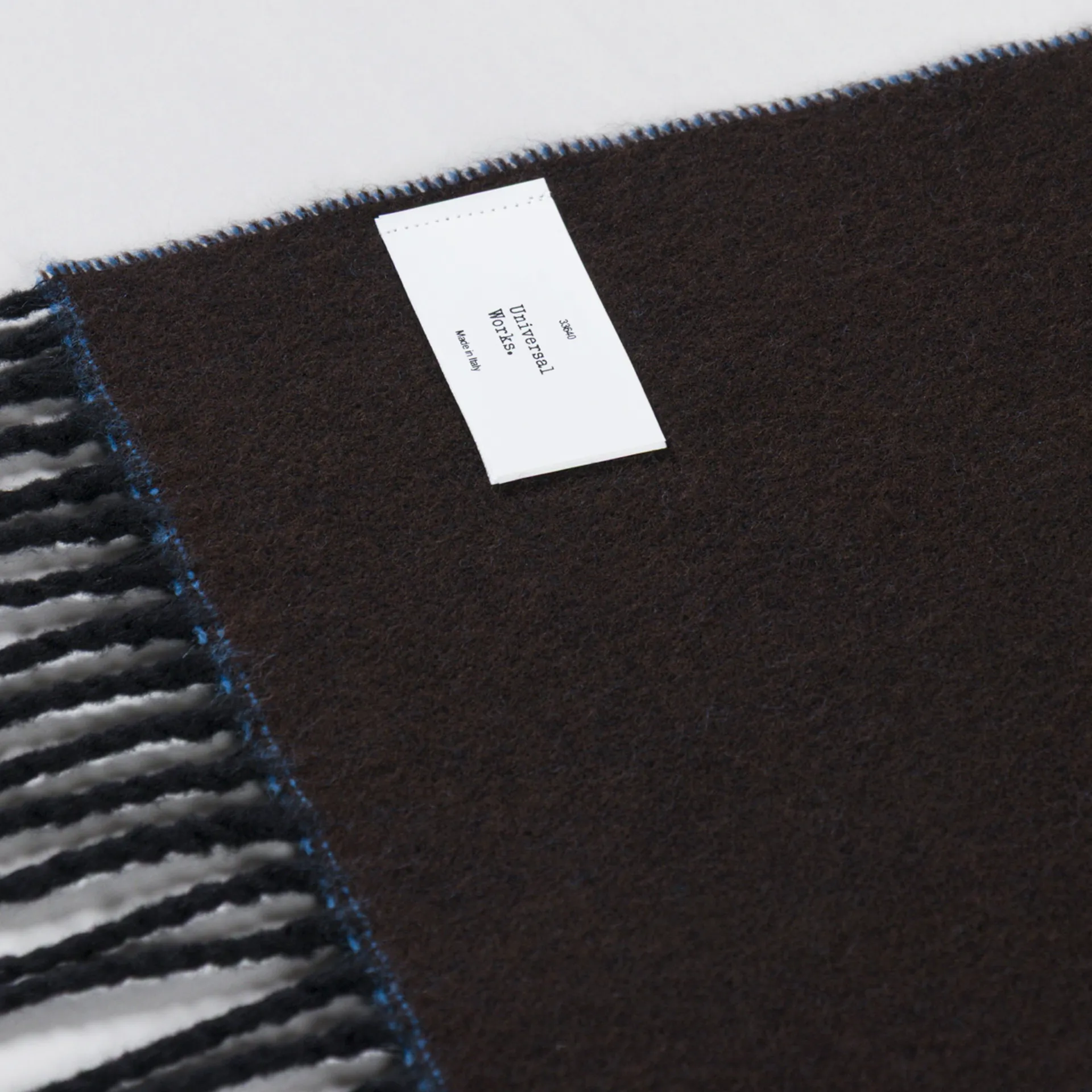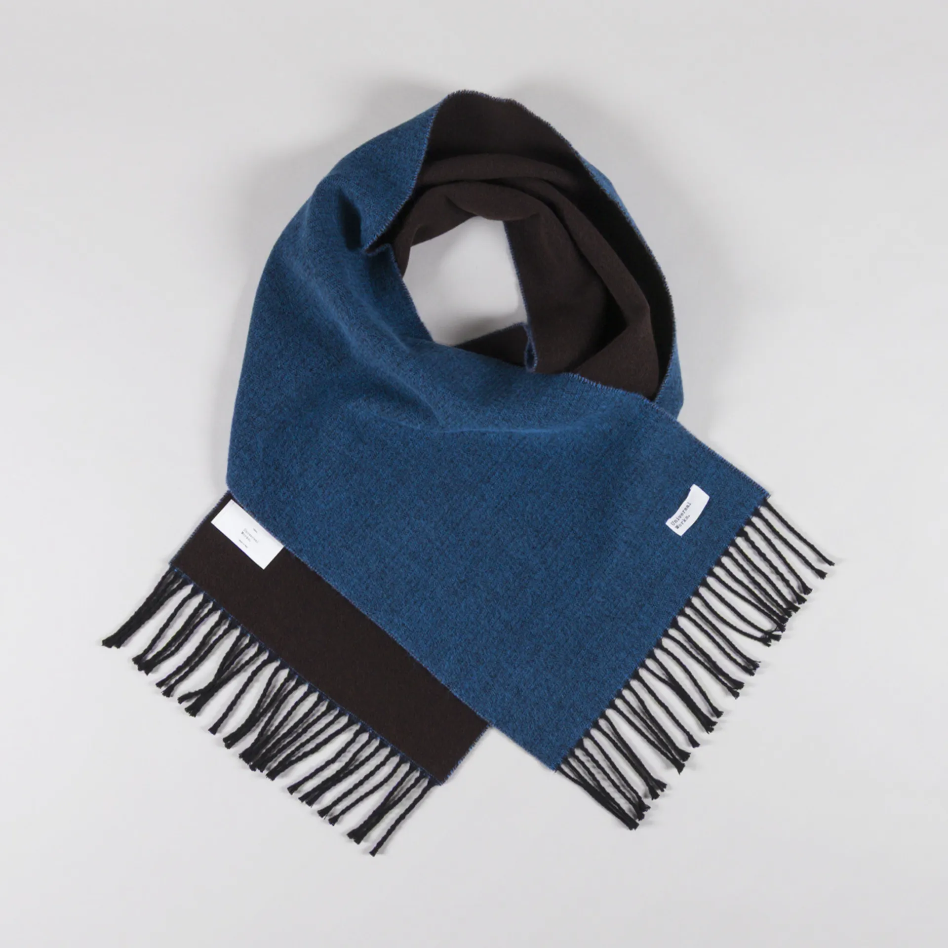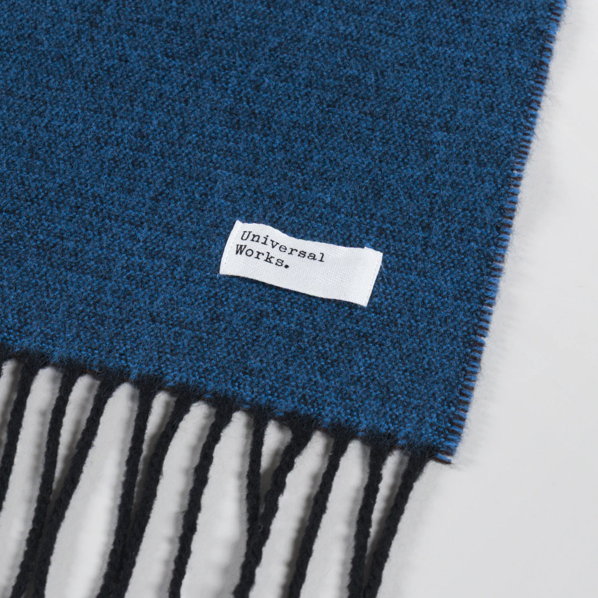 A double-sided scarf from Universal Works, constructed from a soft and warm blend of cotton, acrylic, polyester and other fibres, with tassels at either end.