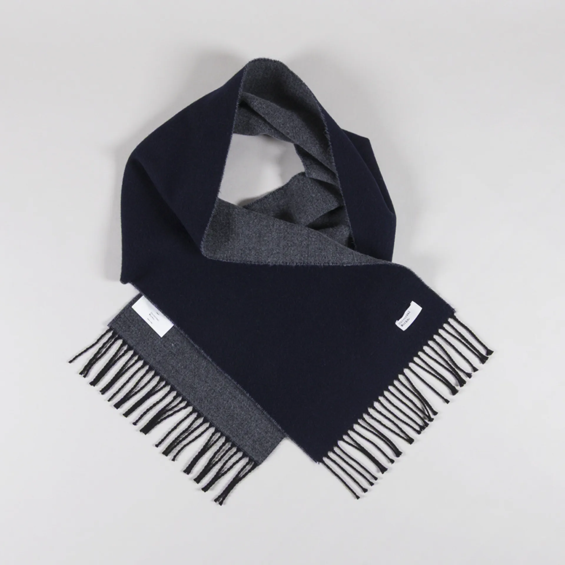 Universal Works Double Sided Scarf Navy Mid Grey