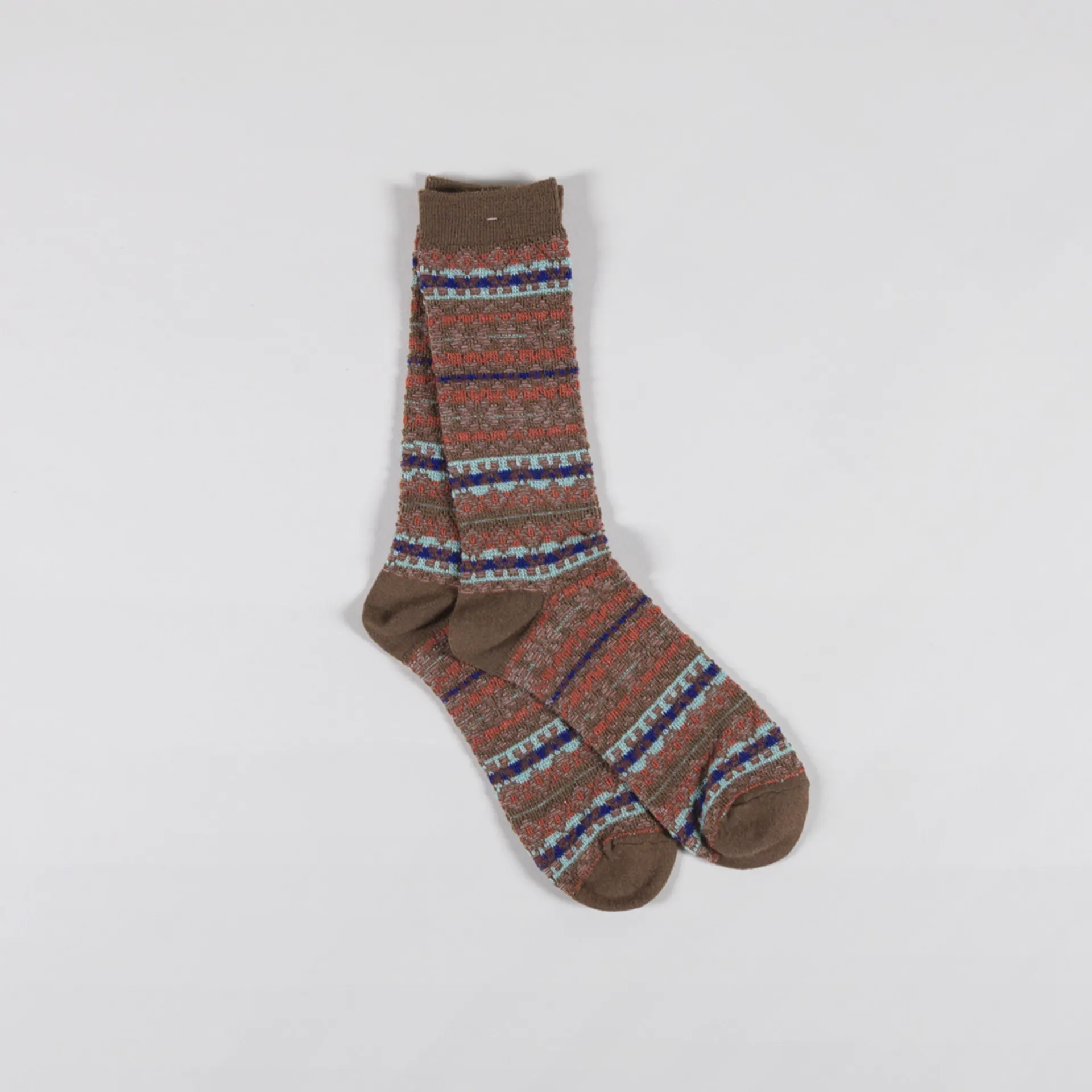 Anonymous Ism Reverse Fairisle Jacquard Crew Socks Brown