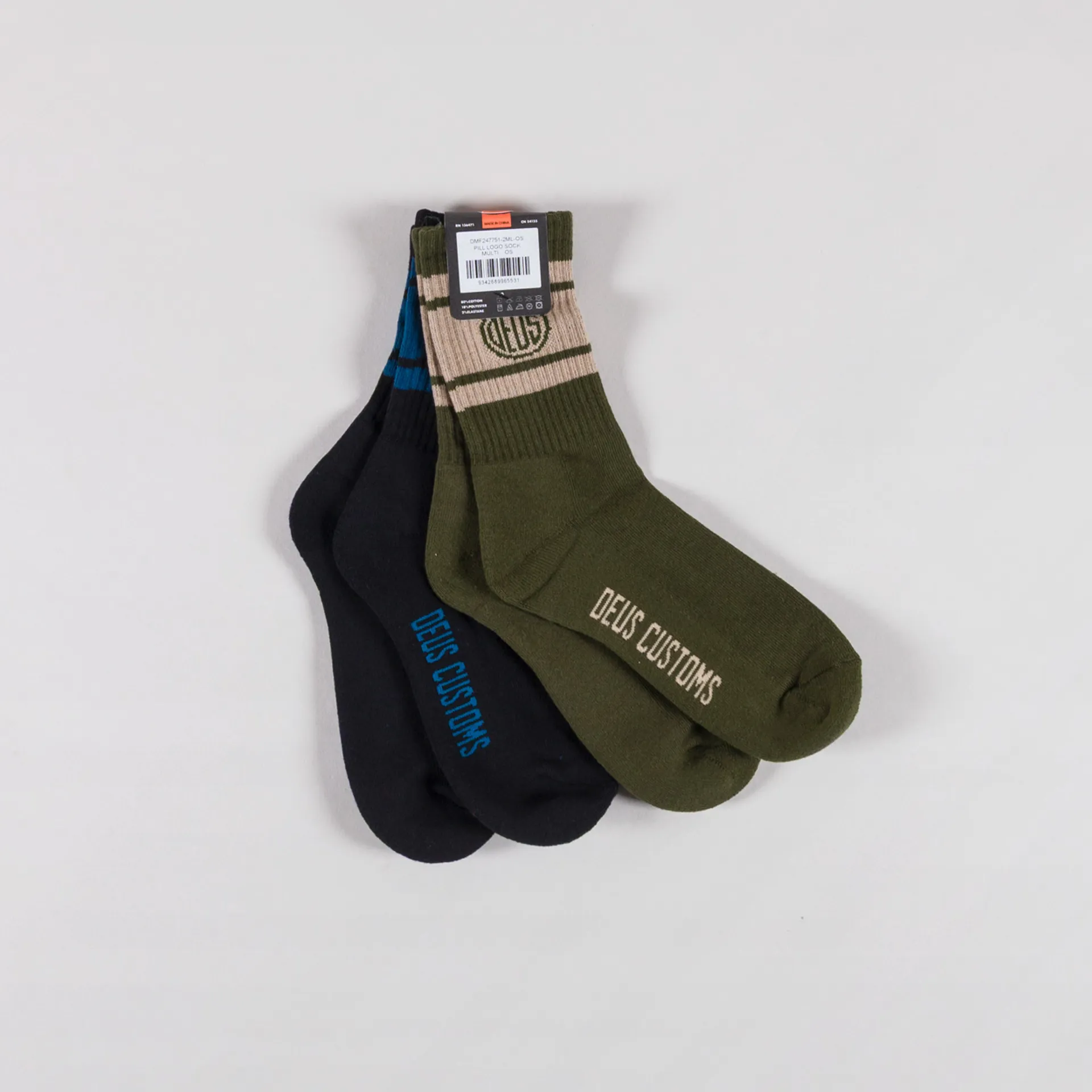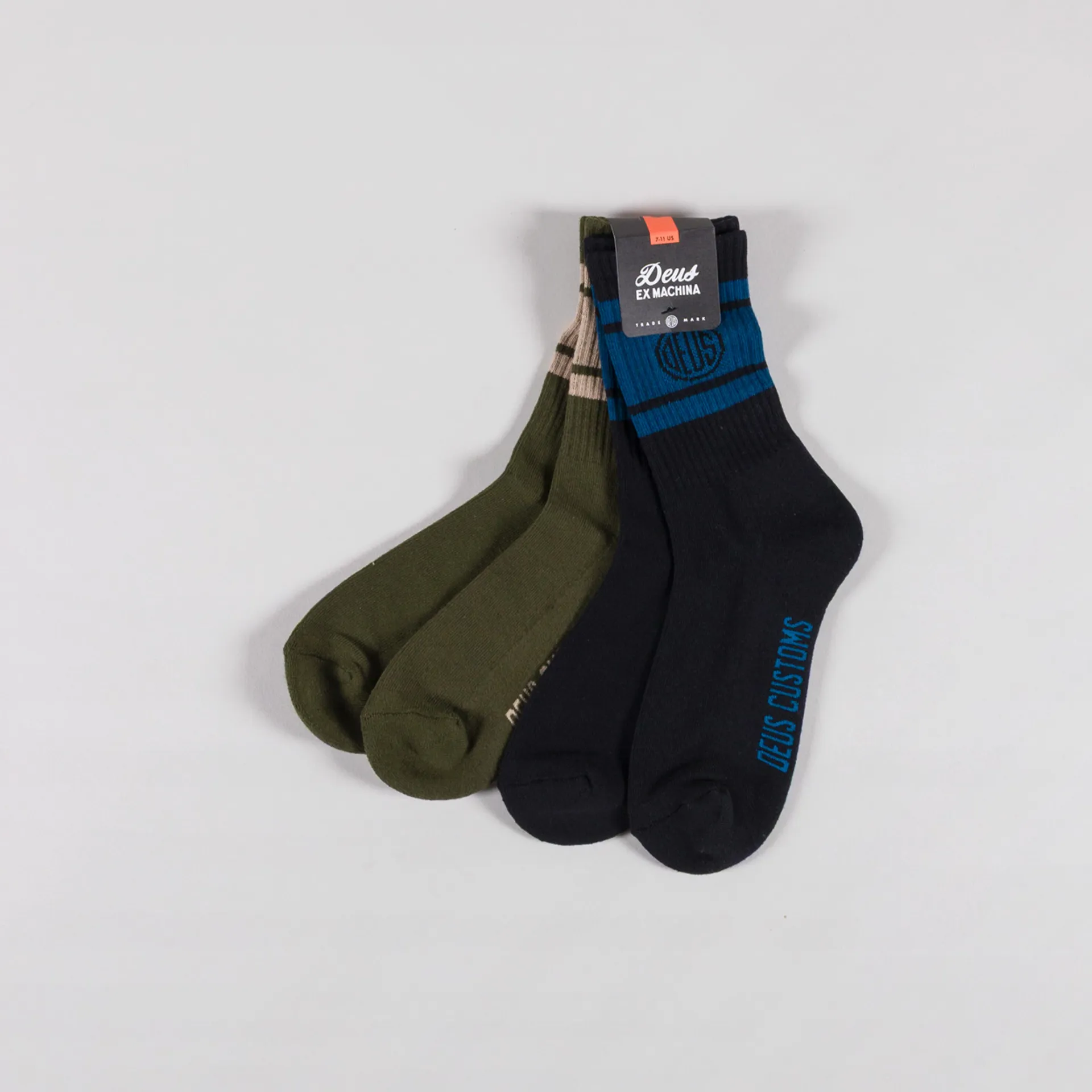 A two-pack of socks from Deus, constructed from a soft cotton blend, with logos throughout.