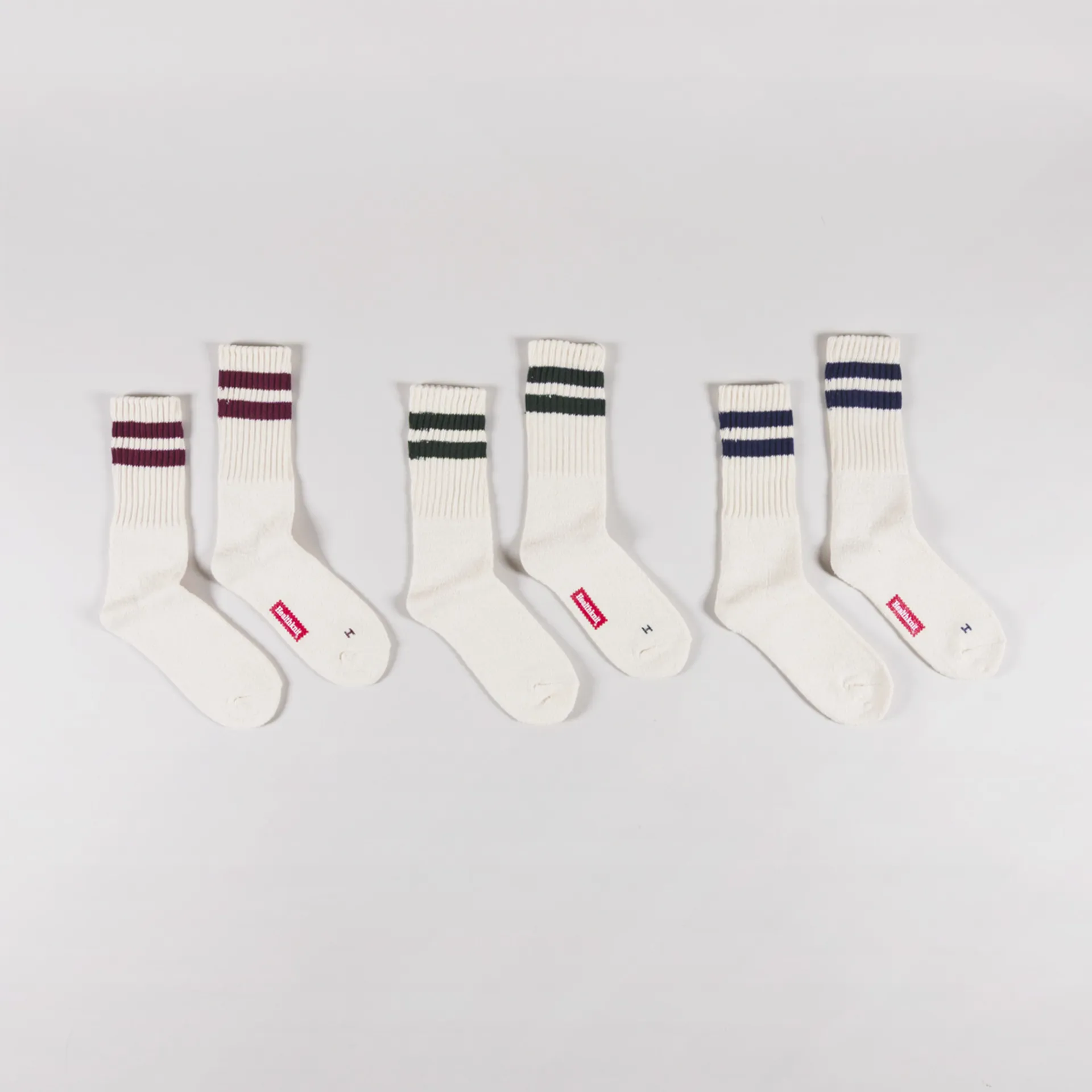 Healthknit 3 Pairs Striped Crew Socks Ivory Dark Green Navy Burgundy