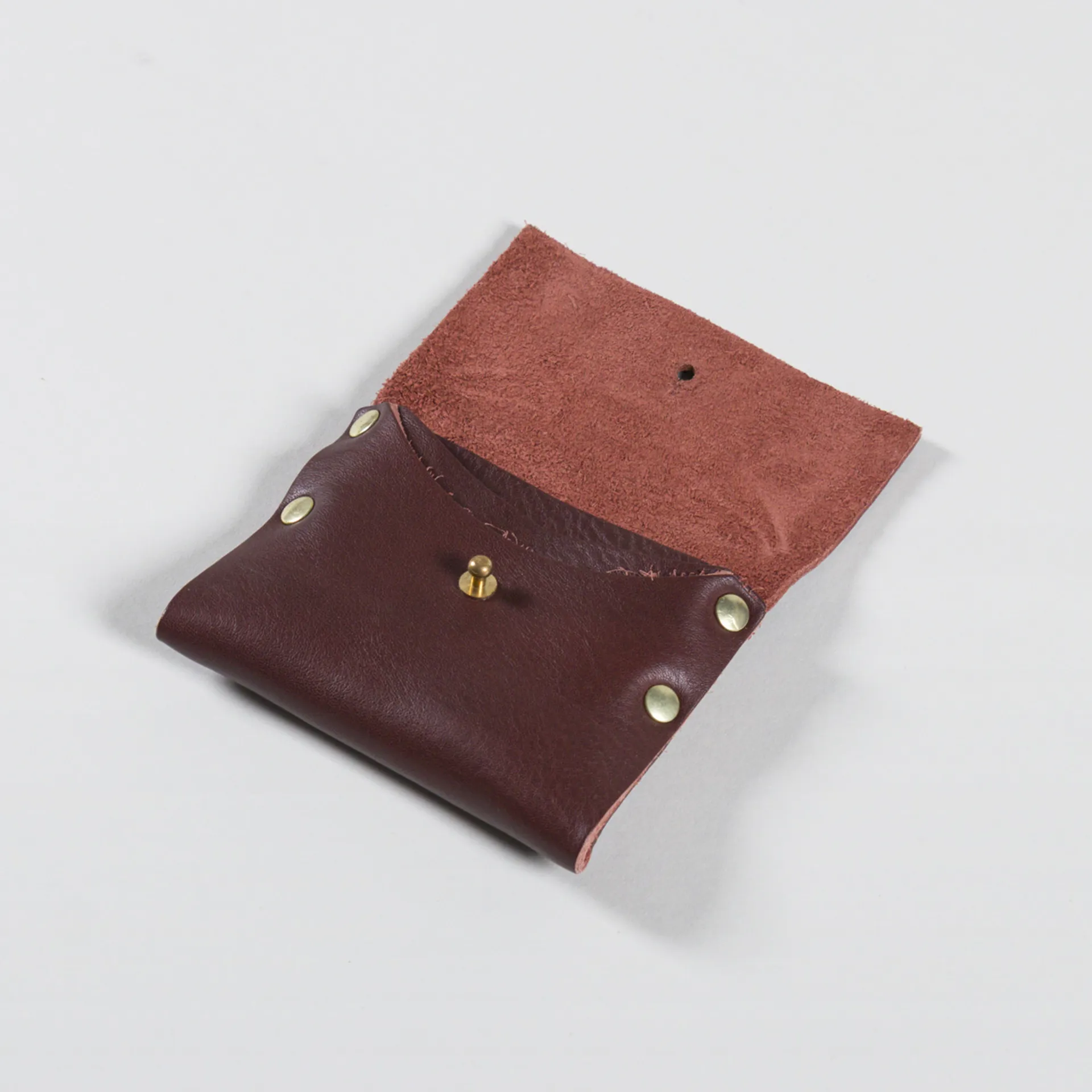 A purse from Kate Sheridan, constructed from tumbled Italian vegetable-tanned leather with an unlined natural finish inside, Italian brass hardware and three internal sections.