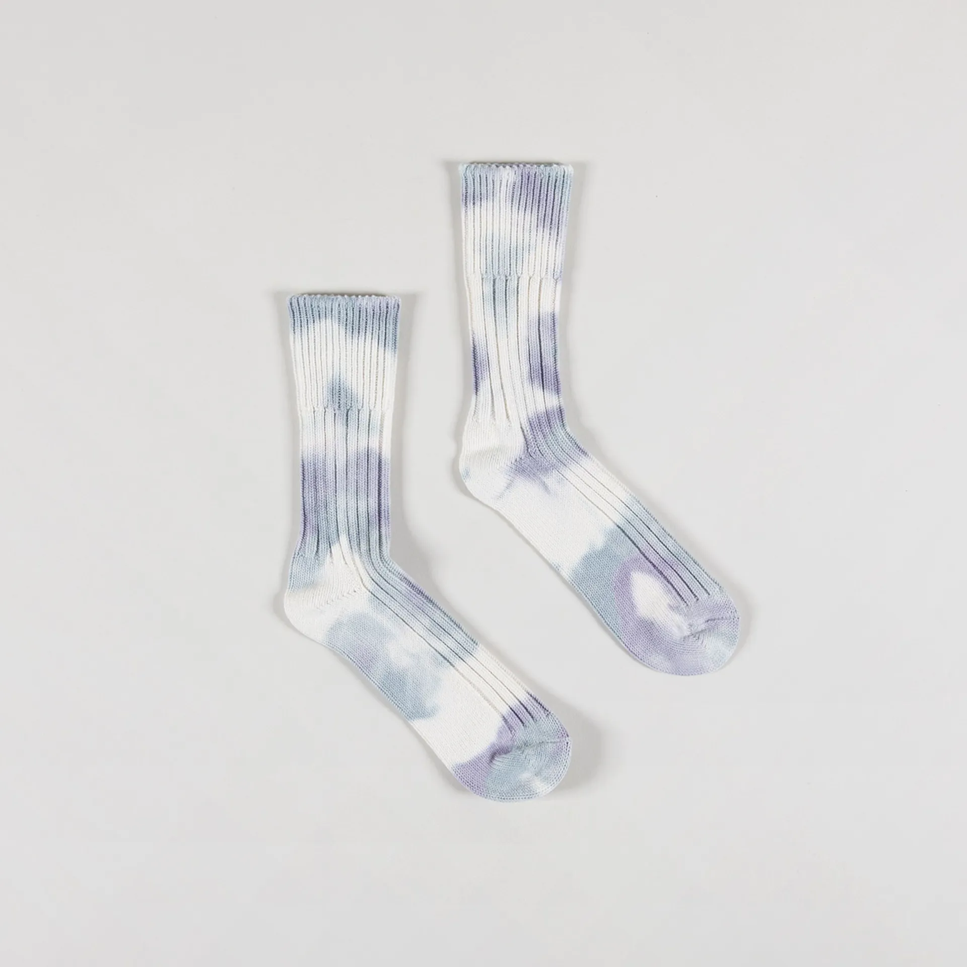 Rototo Chunky Ribbed Socks Tie Dye Blue White