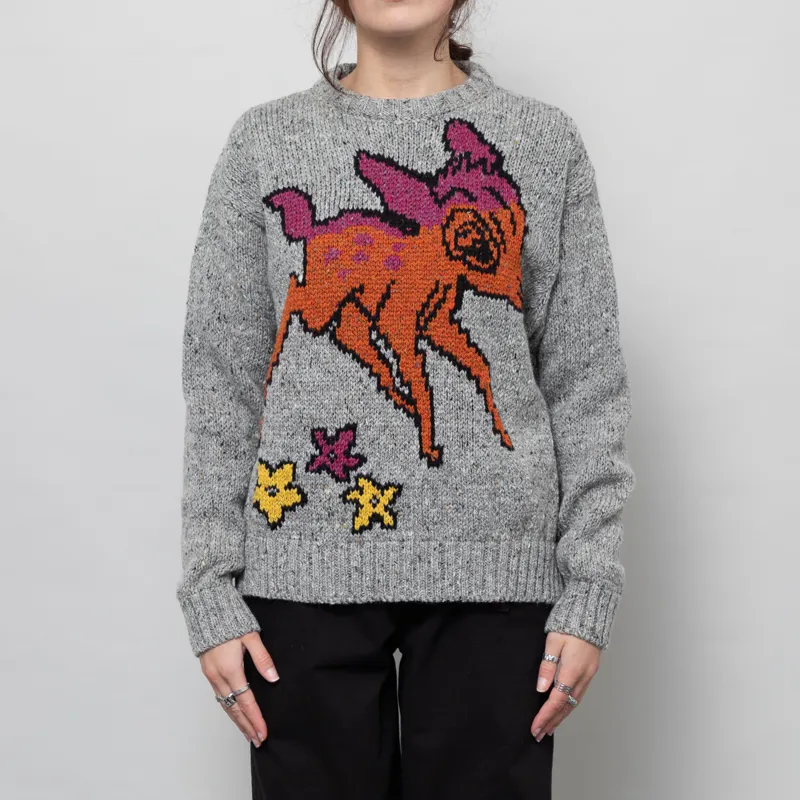 Howlin' Womens Acid Deer With Flowers Knit Jumper Grey