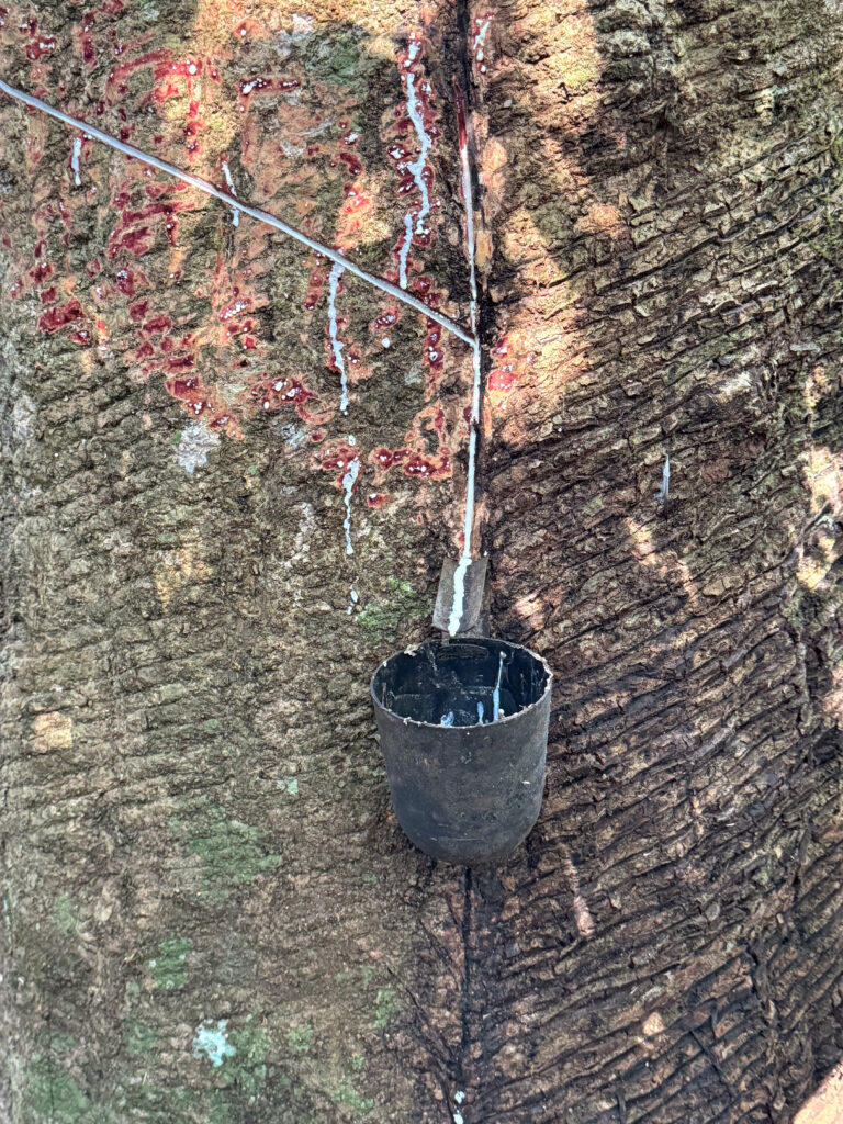This is not a charity—the rubber tappers have to produce according to environmentally sound practices. The rubber must also meet a whole host of specifications to allow it to be used in footwear manufacturing. It must be harvested in such a way that it contains no contaminants (plus a load of other specifications I’m not going to pretend I understand).