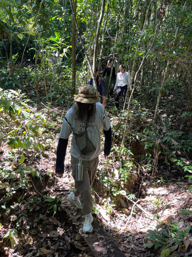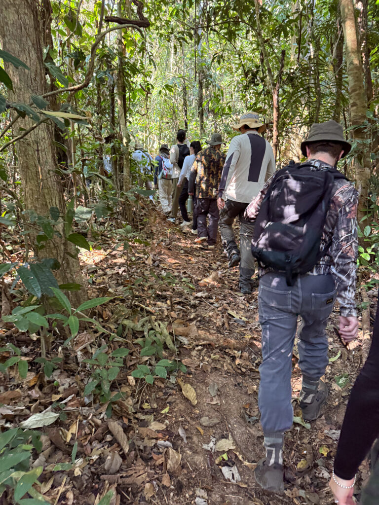 By 9am we’re trekking through the forest with local rubber tapper Manuel. The hopes of a cool day disappear quickly as we hit 35 degrees and some serious humidity. Manuel explains he carries out most of his rubber tapping before the heat of the day really kicks in and regularly sets out at 2am—an impressive feat to navigate this place in the daylight, let alone in the dark.
