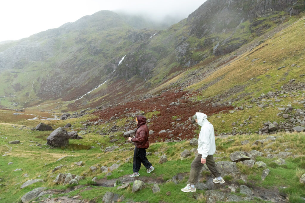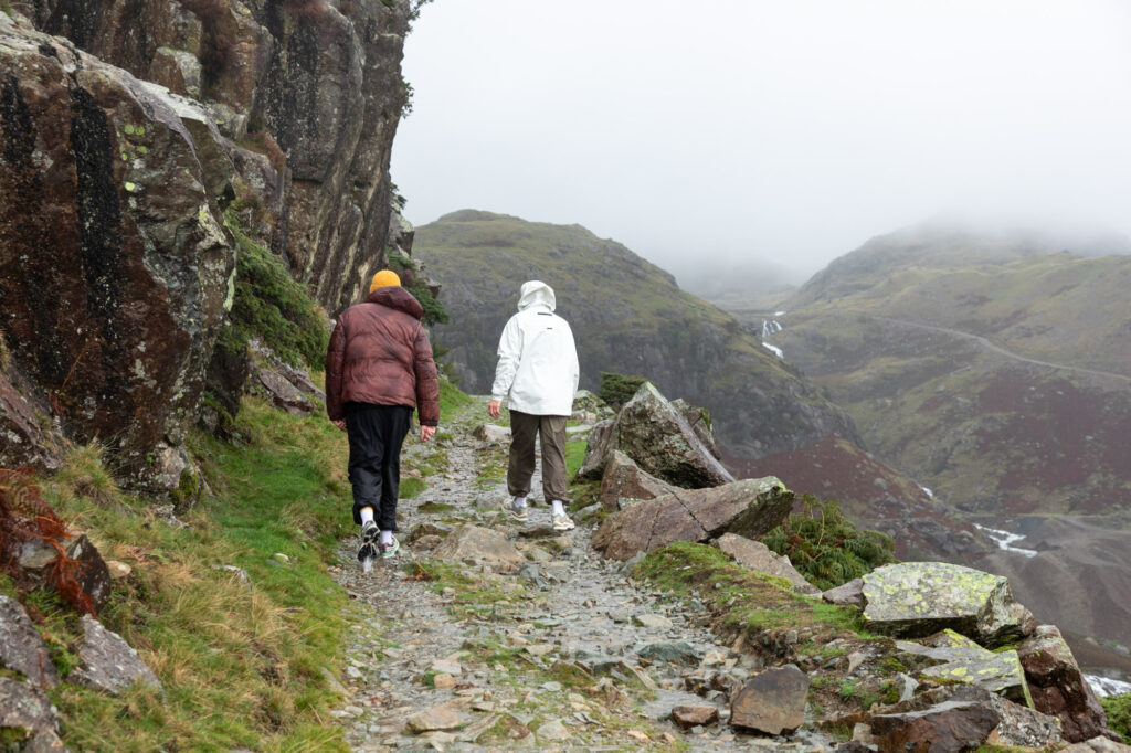 You might think a puffer jacket might not have been the best choice here, but the Cocoon Puffer Ice Dye’s weather-resistant shell provided a level of protection as we headed up toward Levers Water.