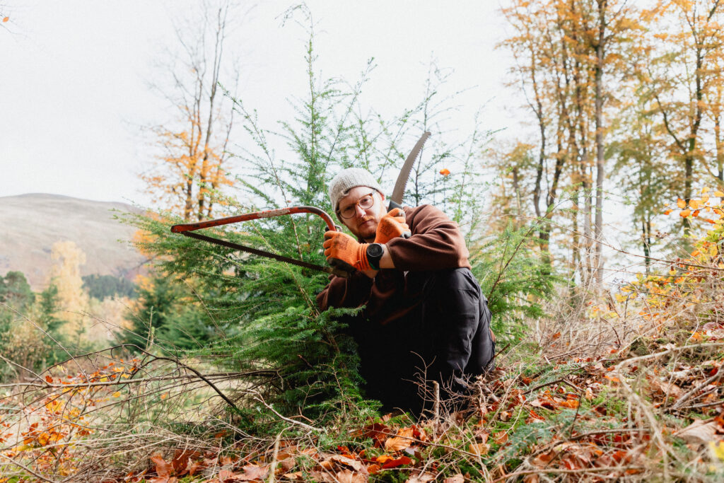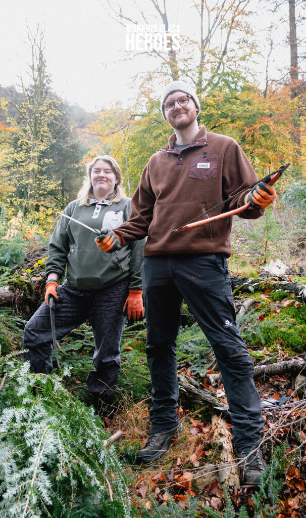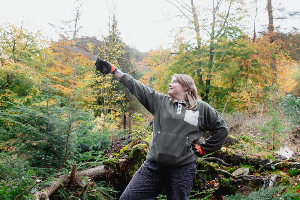 The purpose of our visit today was to help clear these trees while they’re in their early stages to allow our native species to get away and make this area of woodland easier to manage in the long term. With this area being a previous plantation it was a bit treacherous underfoot so care was needed to make sure we didn’t end up on the floor alongside the trees.