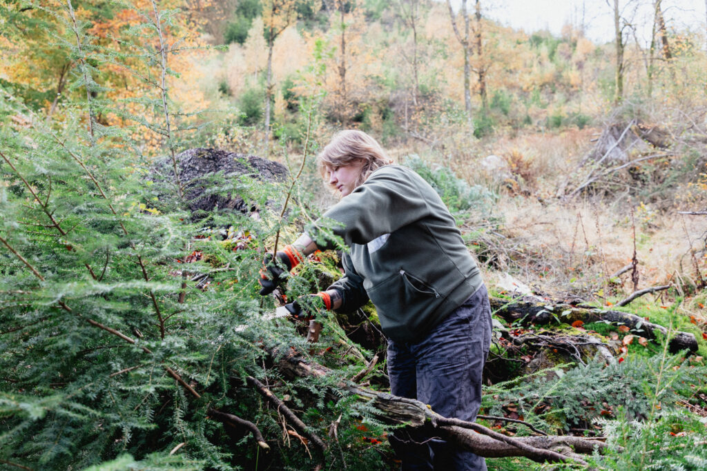 Last week we were back out in the woods – it’s been too long! The team had been invited by Cumbria Woodlands to explore one of Britain’s temperate rainforests. In the morning, we took a closer look at the forest floor to see what’s happening beneath the canopy. Then, in the afternoon, we helped restore a former Western Hemlock plantation back to native woodland.