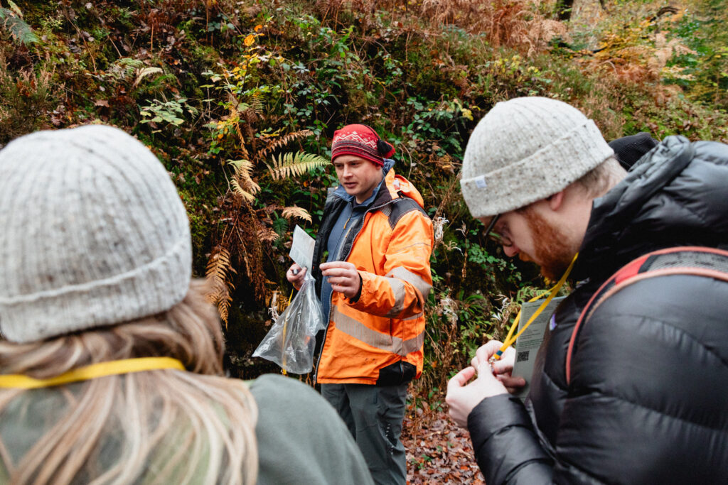 To start the day off we met up with Angus, Jamie and Ewen from Cumbria Woodlands. Angus has been leading the Cumbrian Rainforest Project and took the team on a walk to see what makes a rainforest a rainforest and the species of plants found within them.