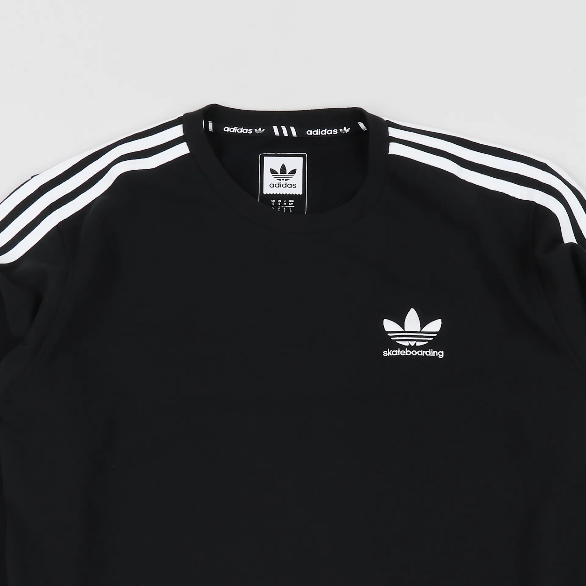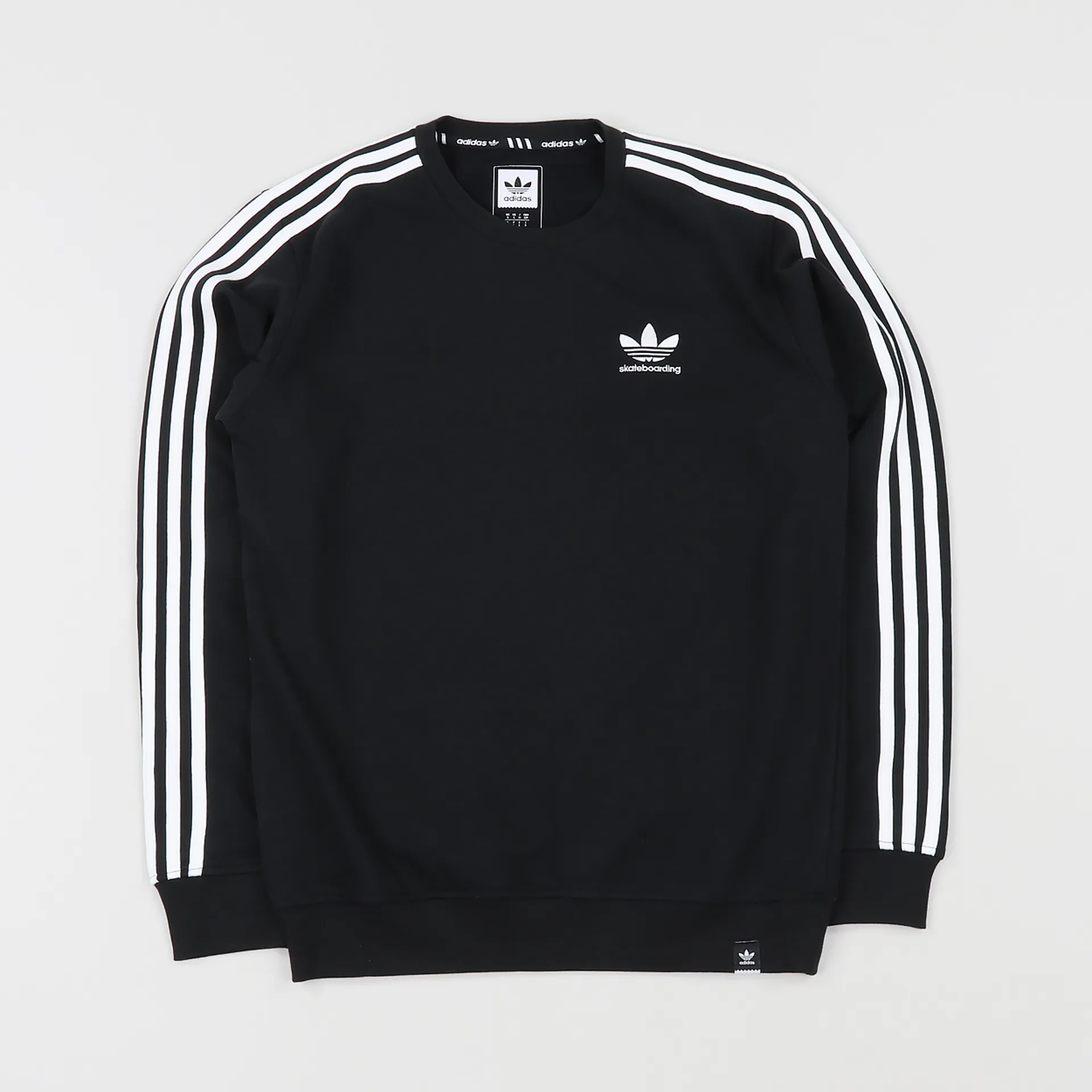 In a regular fit with a ribbed crew neck, hem and cuffs, it also has an embroidered chest trefoil and a woven hem tag, completed of course with the iconic three stripes down the arm.