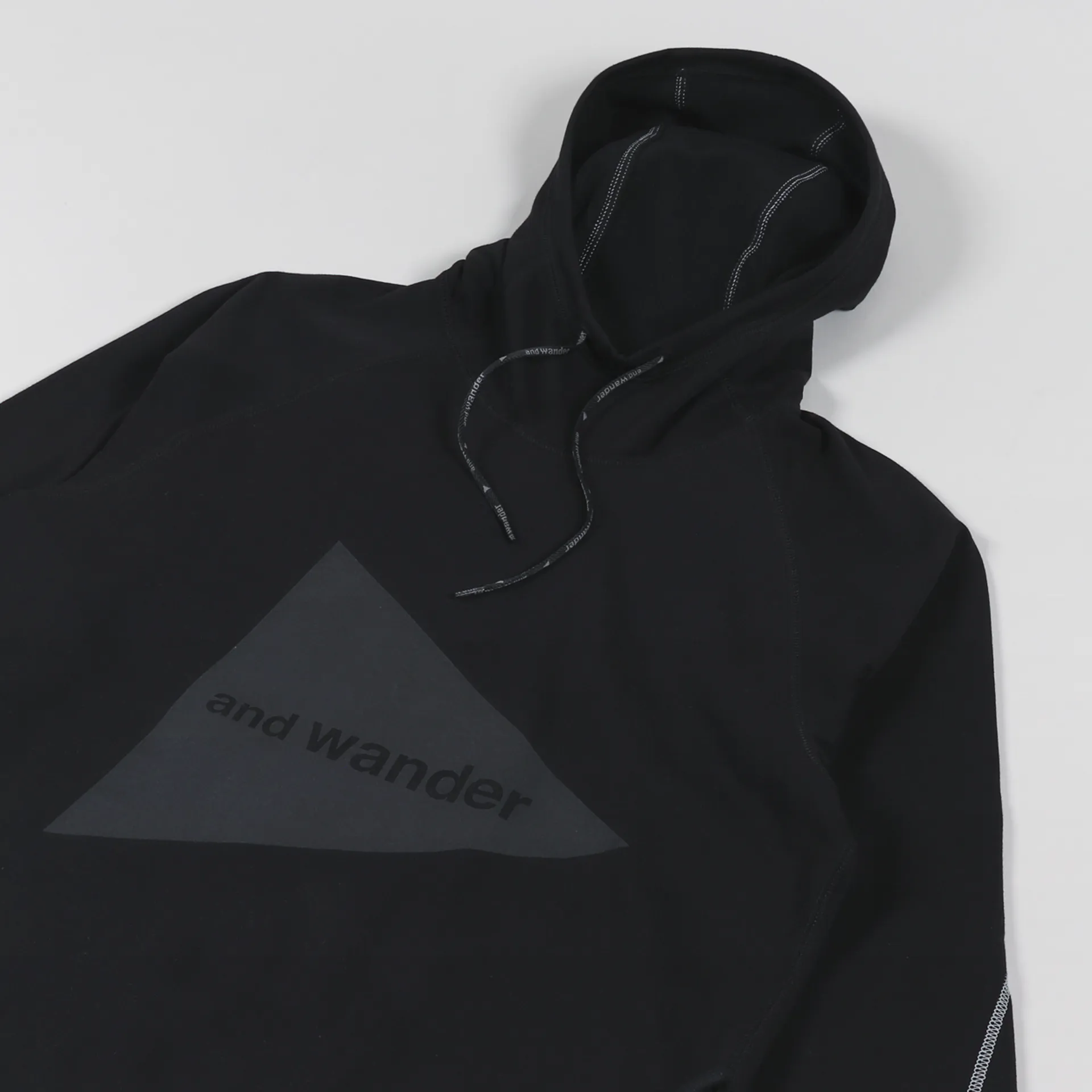 A pullover hoodie from Japanese technical outerwear label And Wander, made from a comfortable blend of 65% cotton and 35% polyester with COOLMAX technology and a sporty loopback lining.
