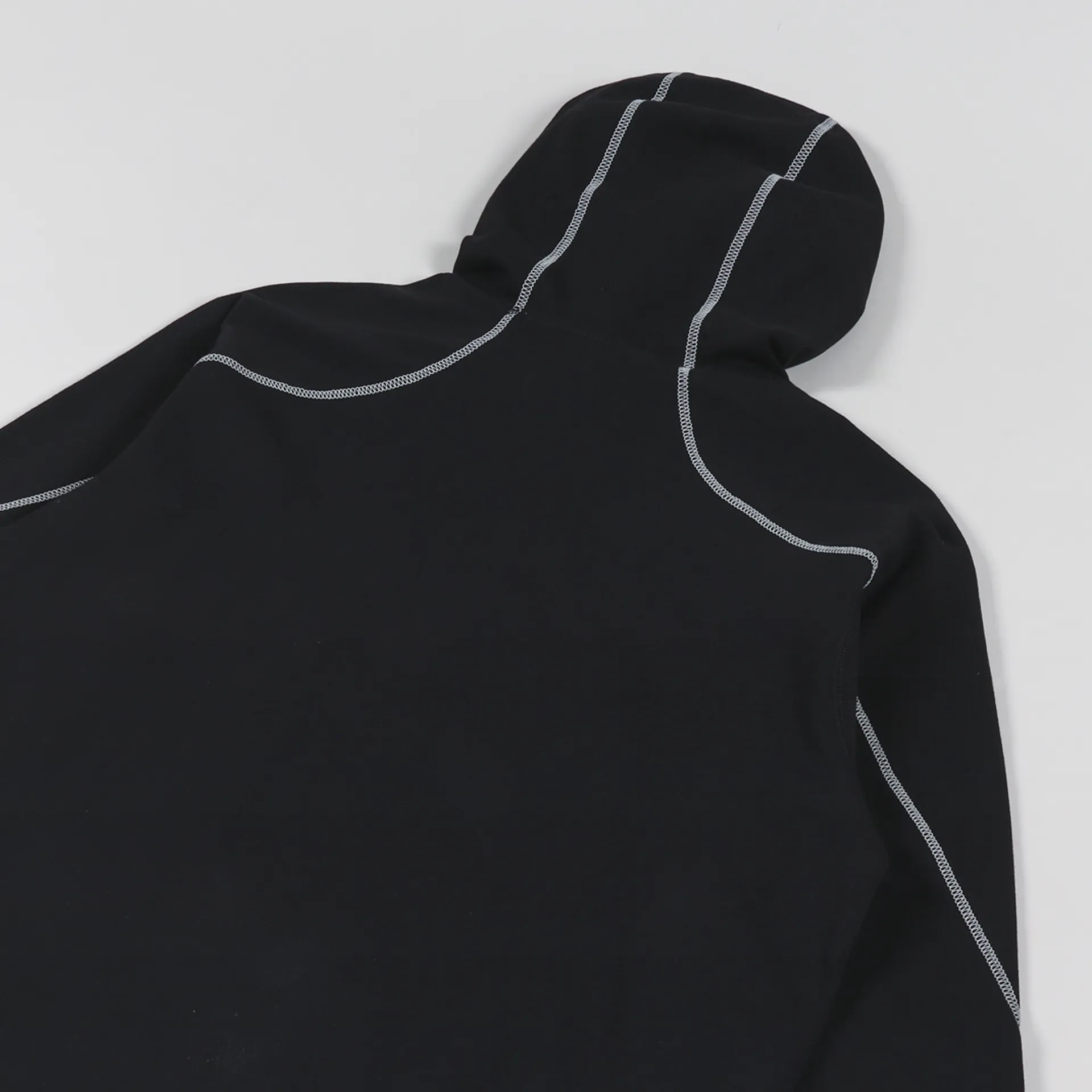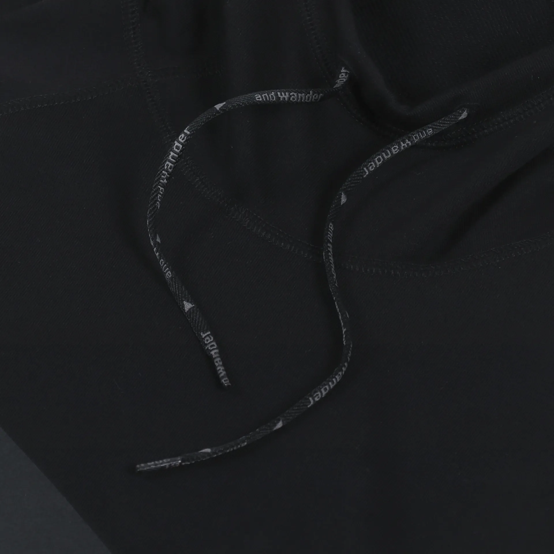 A hoodie from Japanese technical outerwear label And Wander, made from a comfortable blend of 65% cotton and 35% polyester with COOLMAX technology. It has a lightweight and sporty loopback lining and a ribbed hem and cuffs, and drawstring hood.