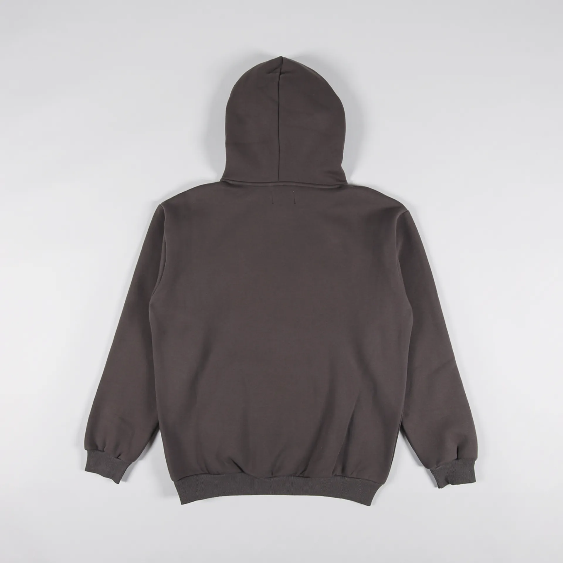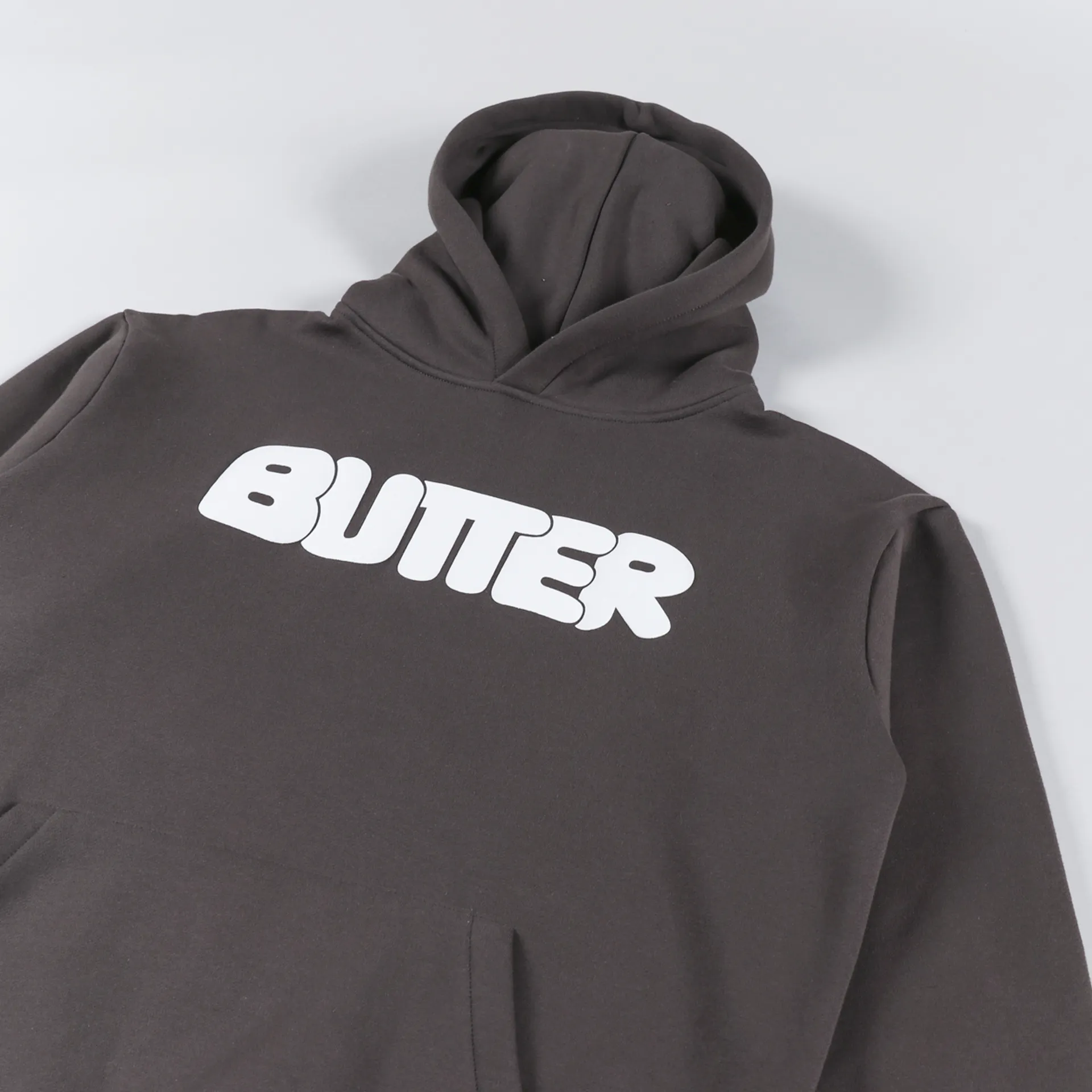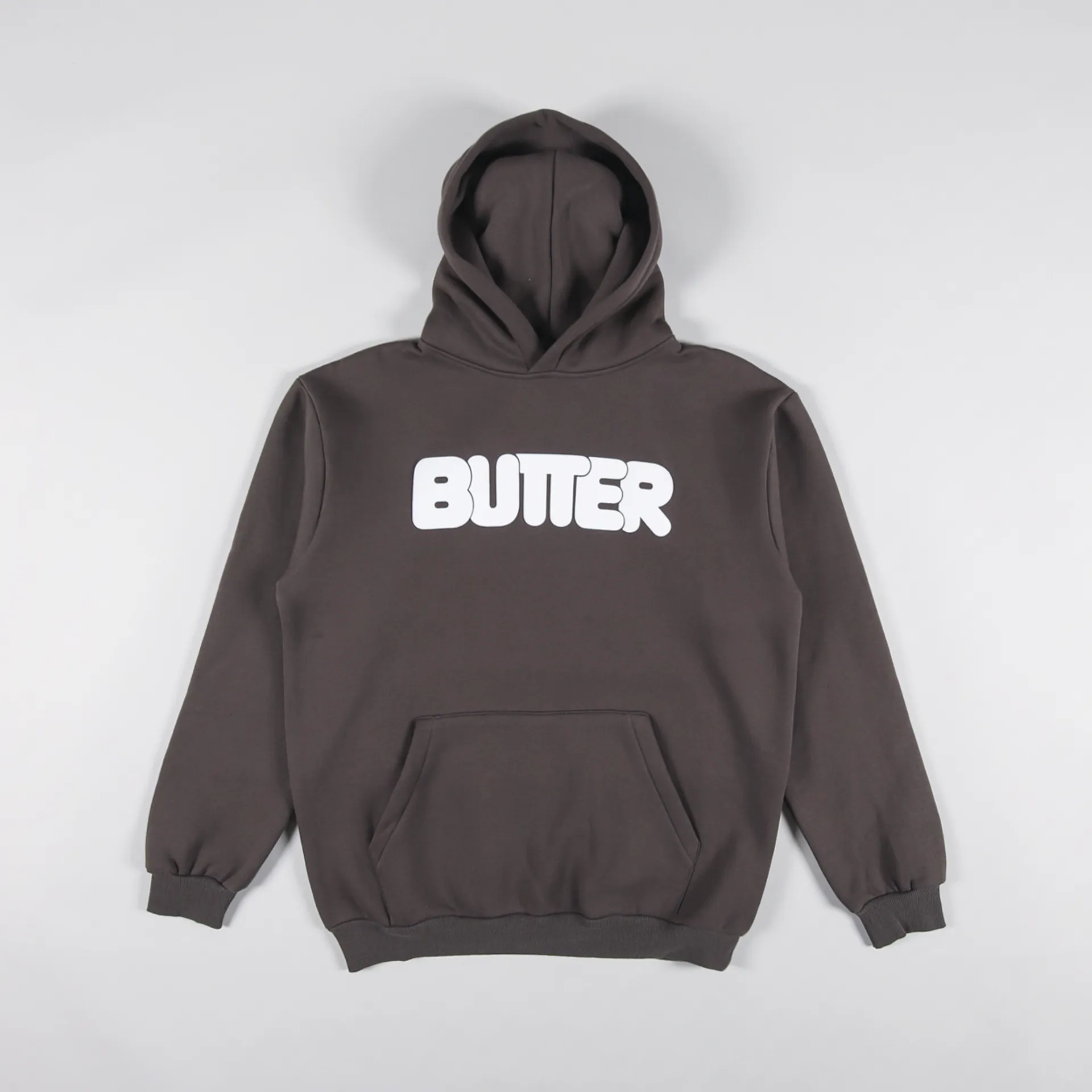 A pullover hoodie from Butter Goods made from a comfortable blend of 65% cotton and 35% polyester with a brushed fleece lining, a ribbed hem and cuffs, a kangaroo pocket and a Puff Rounded logo to the front.