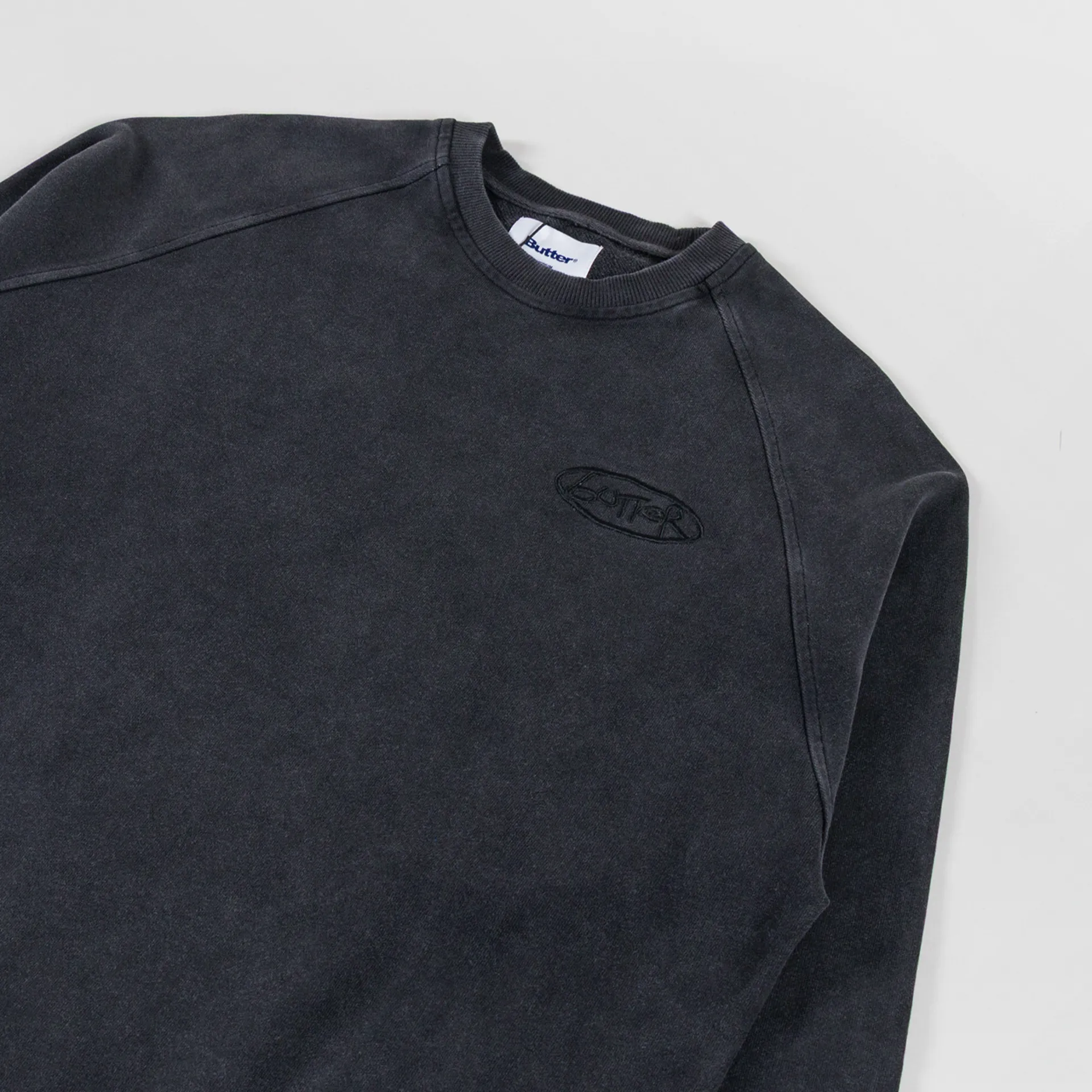 A sweatshirt from Butter Goods, constructed from a midweight cotton-poly blend that has been enzyme washed to produce a worn-in look. It's cut in a regular fit for everyday comfort, with a loopback lining, raglan sleeves, a ribbed crewneck, hem and cuffs. Finished off with a tonal embroidered logo to the chest.