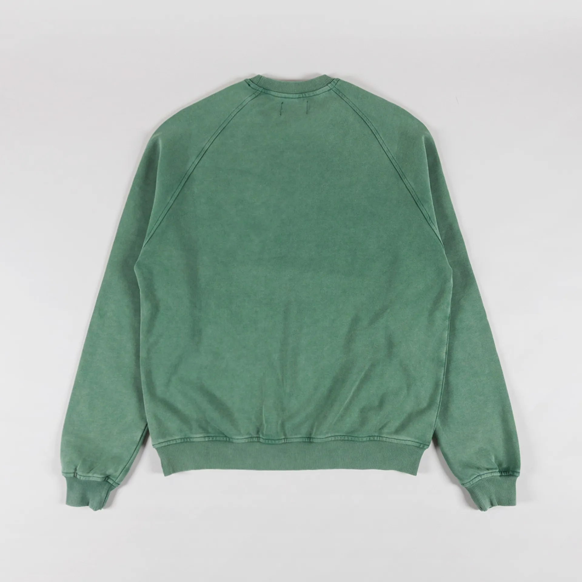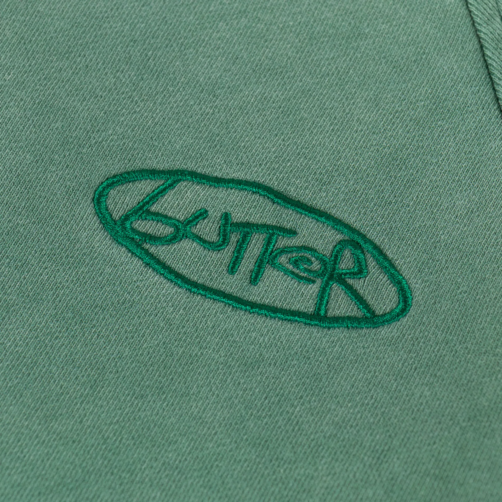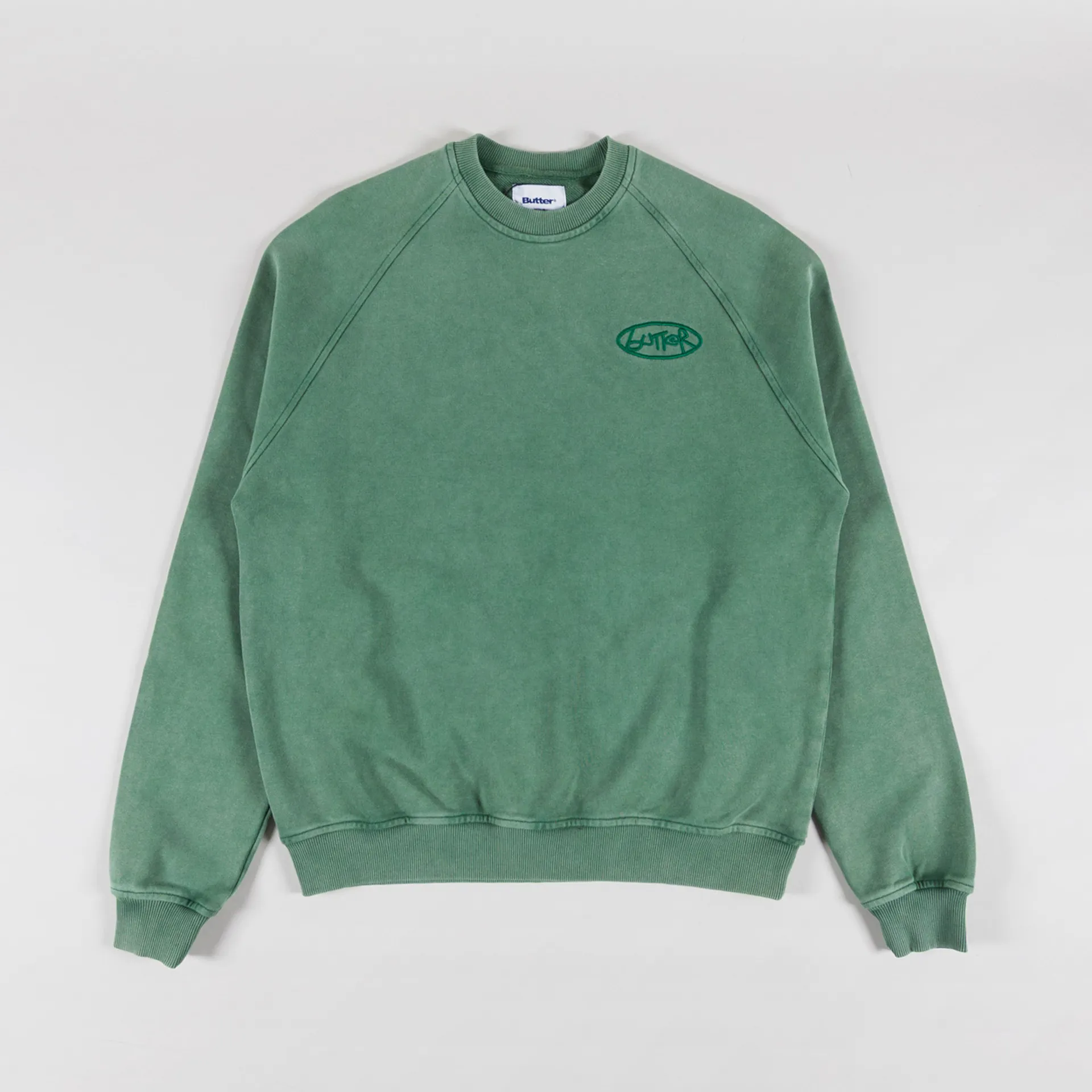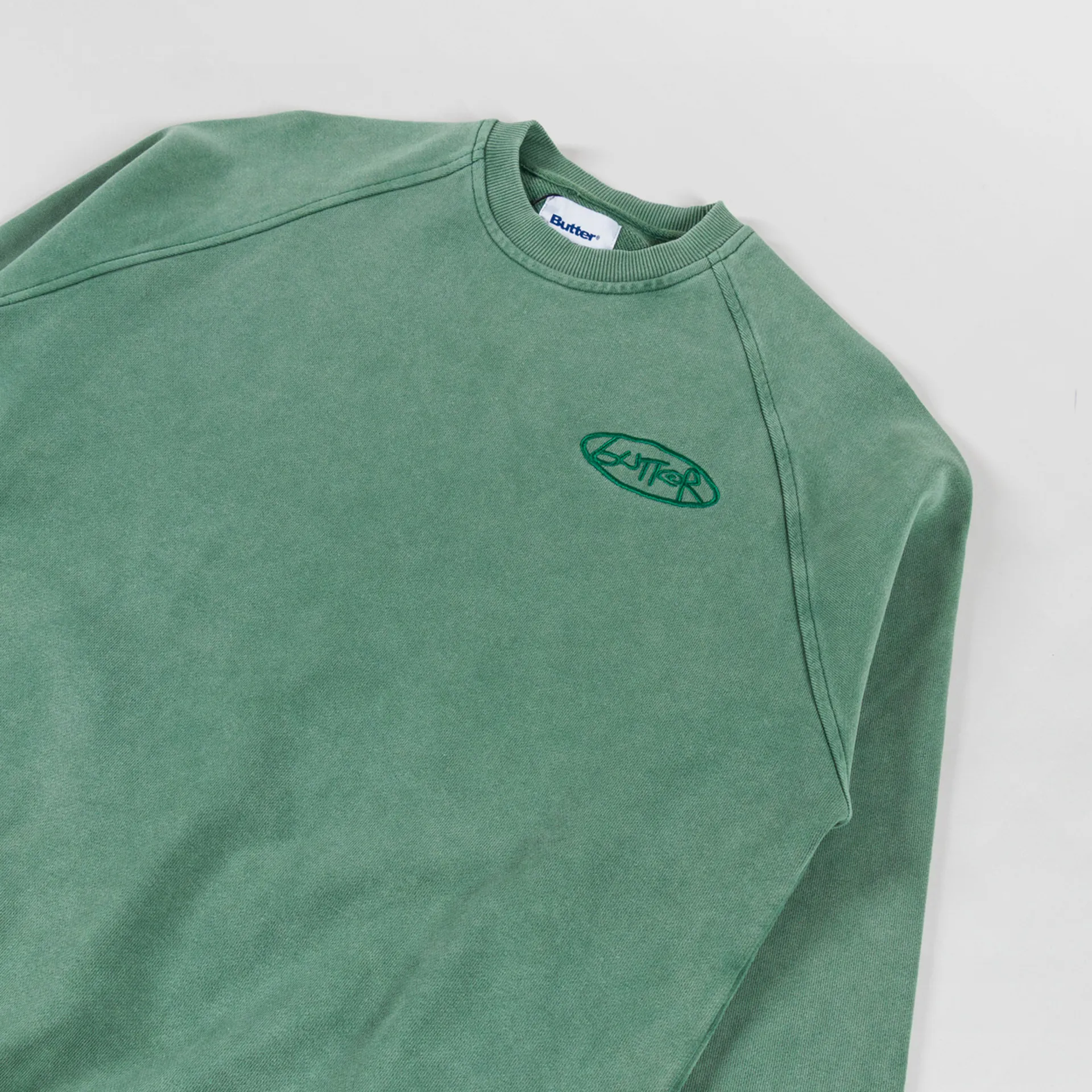 A sweatshirt from Butter Goods, constructed from a midweight cotton-poly blend that has been enzyme washed to produce a worn-in look. It's cut in a regular fit for everyday comfort, with a loopback lining, raglan sleeves, a ribbed crewneck, hem and cuffs. Finished off with a tonal embroidered logo to the chest.