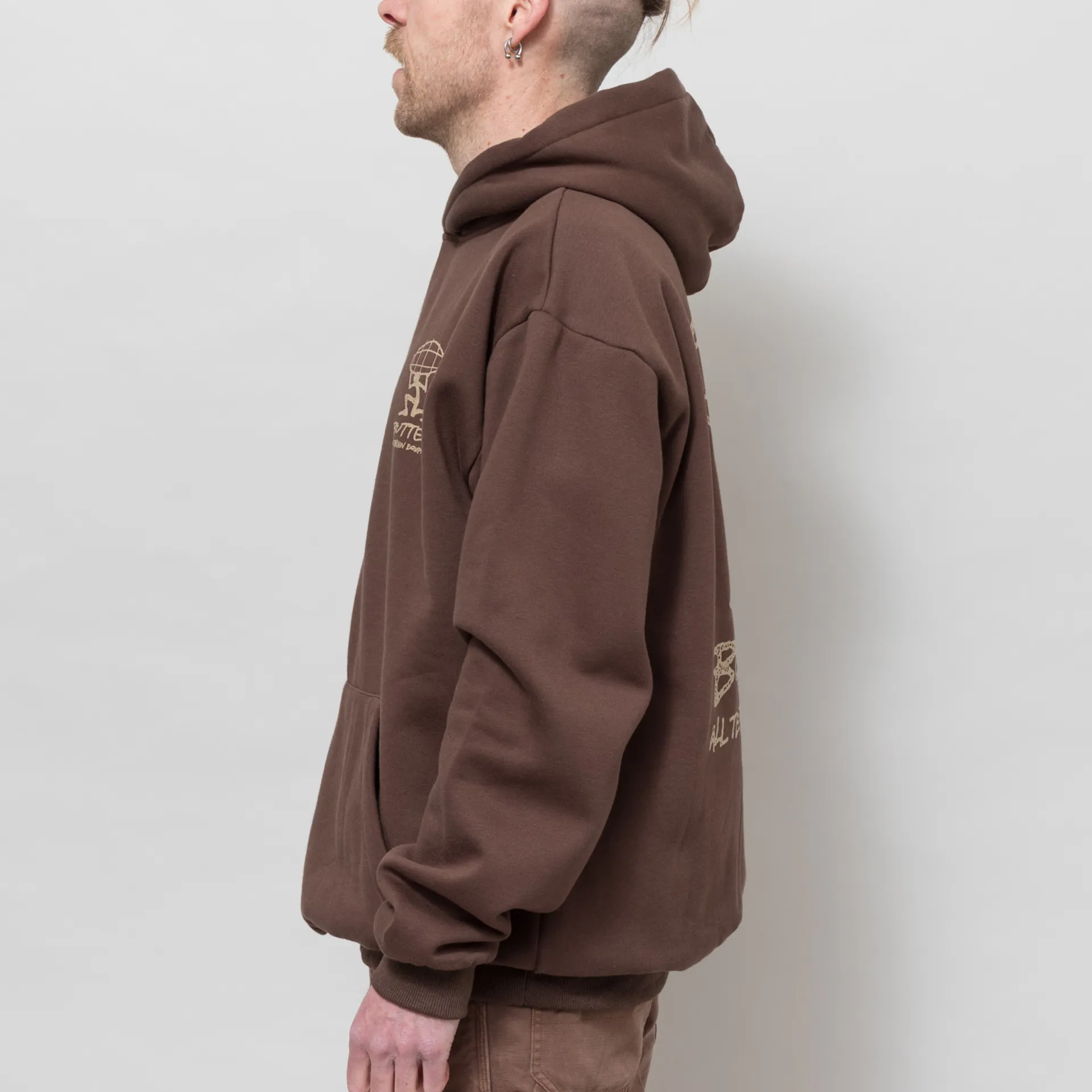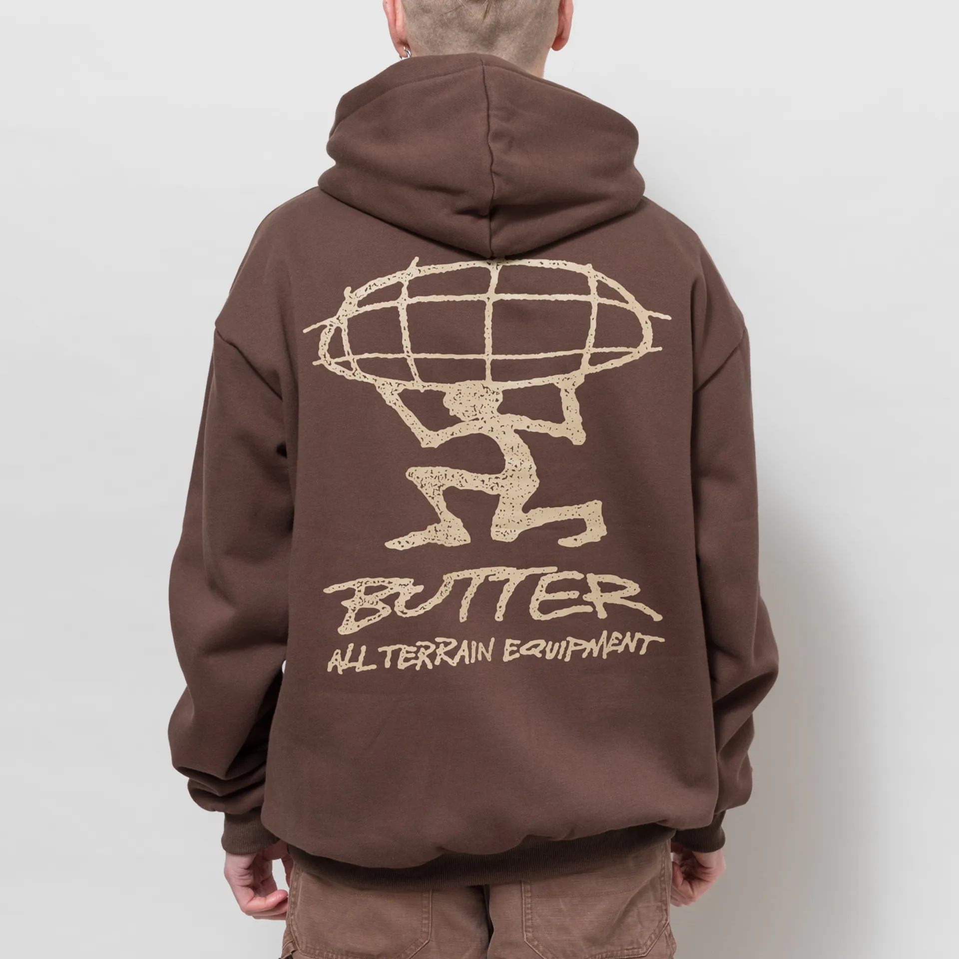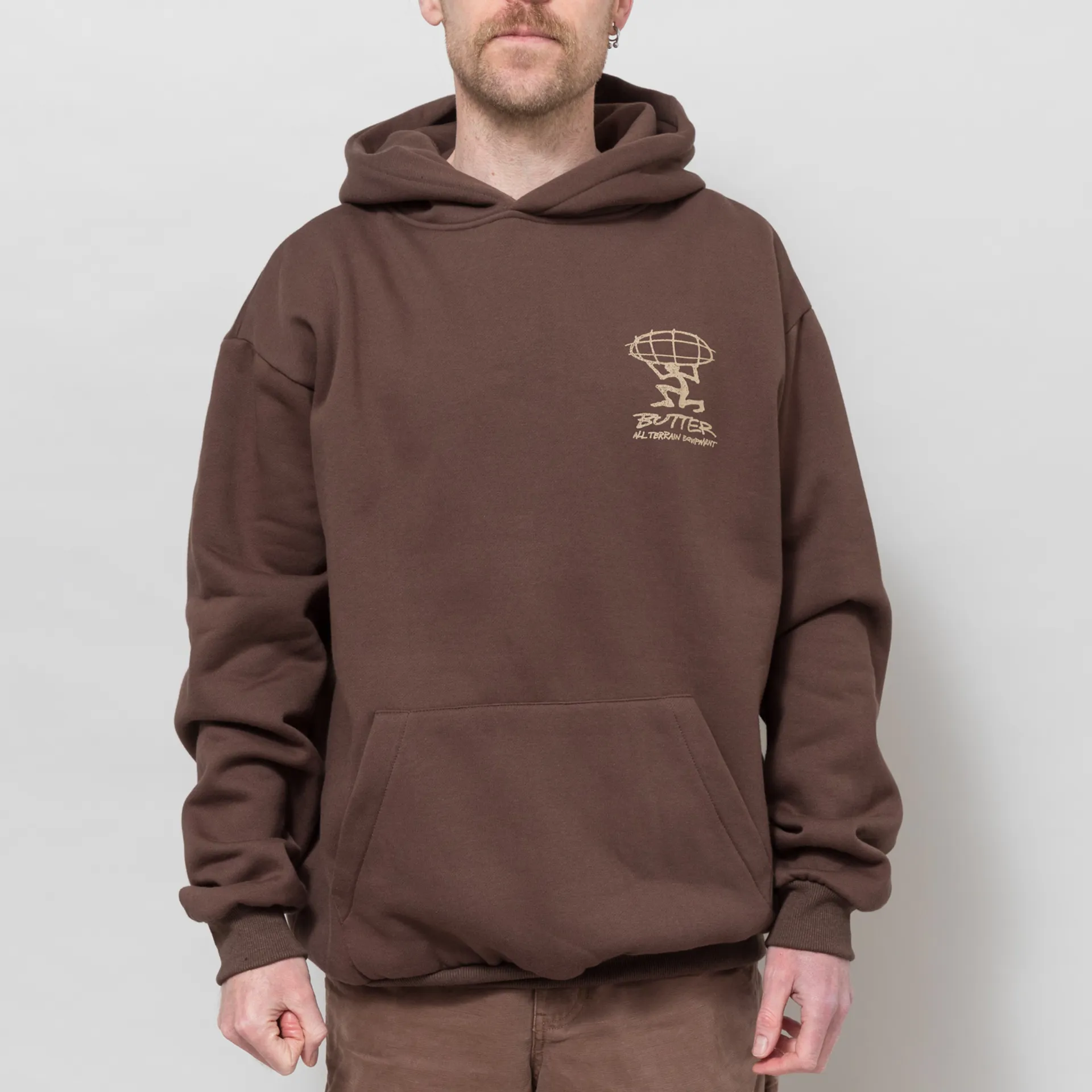The All Terrain Pullover Hoods from Butter Goods is cut in a relaxed fit for everyday comfort, constructed from a soft cotton-poly blend with a fleece-back lining. It features a large hood, a classic kangaroo pocket, a ribbed hem and cuffs. Finished off with some cool screenprinted graphics to the chest and back.