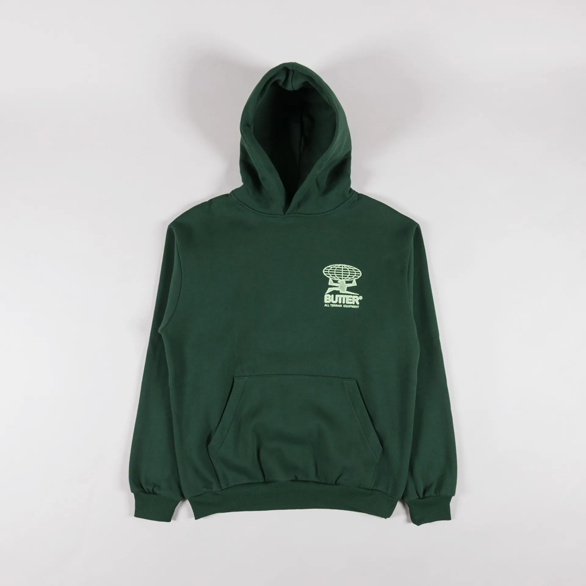 The All Terrain Pullover Hoods from Butter Goods is cut in a relaxed fit for everyday comfort, constructed from a soft cotton-poly blend with a fleece-back lining. It features a large hood, a classic kangaroo pocket, a ribbed hem and cuffs. Finished off with some cool screenprinted graphics to the chest and back.