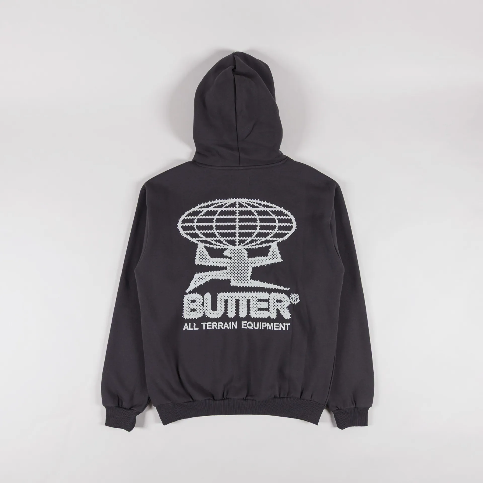 The All Terrain Pullover Hoods from Butter Goods is cut in a relaxed fit for everyday comfort, constructed from a soft cotton-poly blend with a fleece-back lining. It features a large hood, a classic kangaroo pocket, a ribbed hem and cuffs. Finished off with some cool screenprinted graphics to the chest and back.
