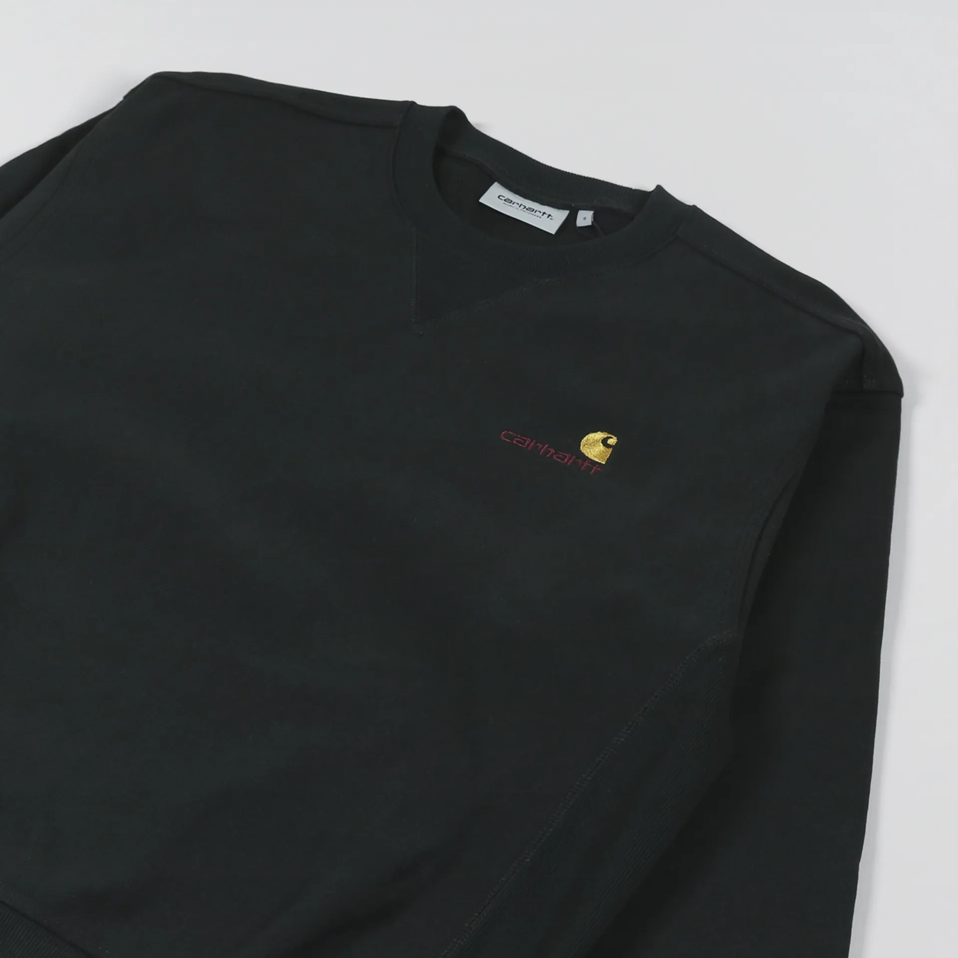 A sweatshirt from Carhartt WIP made from 100% cotton with a warm brushed fleece lining. Has a ribbed crew neck, hem, cuffs and an embroidered American Script logo to the chest.