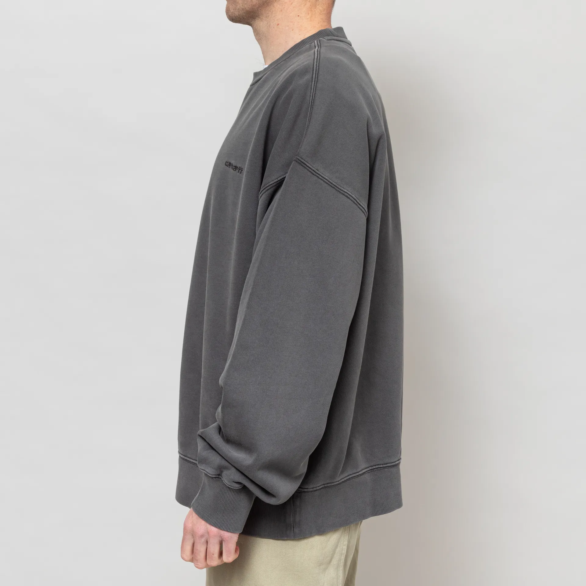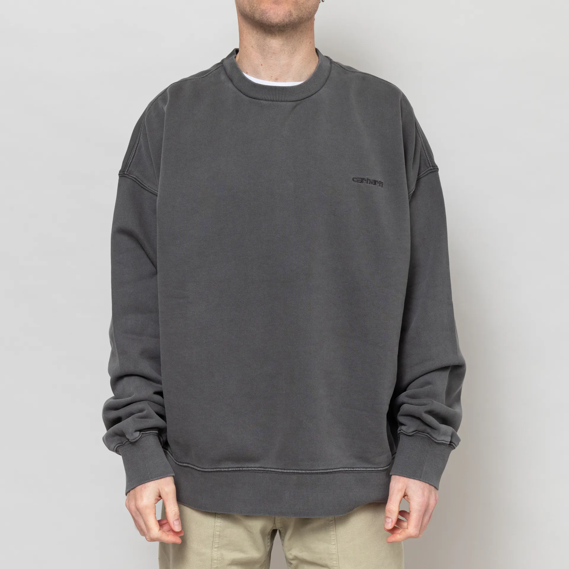 The Benton Sweatshirt from Carhartt WIP is a new silhouette for this season, constructed from heavyweight cotton jersey and cut in a boxy fit, giving you a wider fit through the body, with a slouchy dropped shoulder and a slightly shorter hem. It's been garment-dyed for a softer hand feel and a more complex colour configuration, with a loopback lining for comfort. Featuring a ribbed crewneck, hem and cuffs, then finished with a tonal embroidered script logo at the chest.