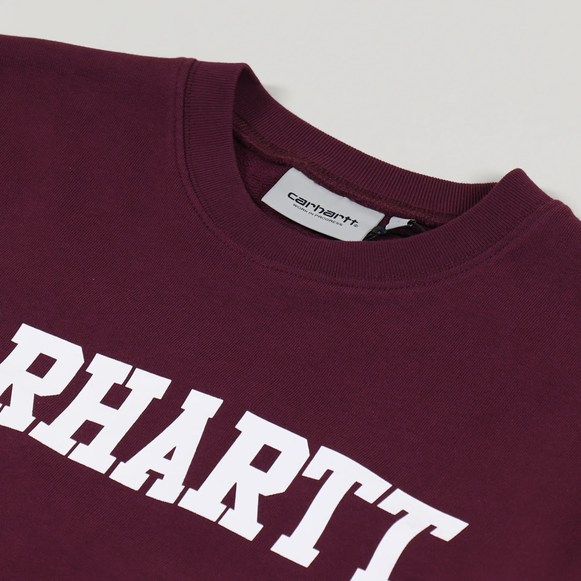 A sweatshirt from Carhartt's Work In Progress collection made from a comfortable 100% cotton with a loopback lining, ribbed crew neck, cuffs and hem and a College logo design printed across the front.